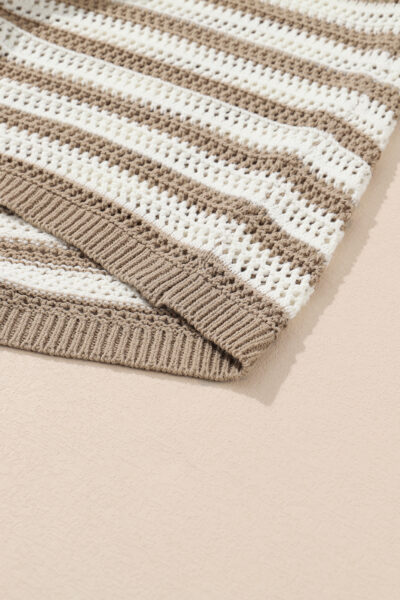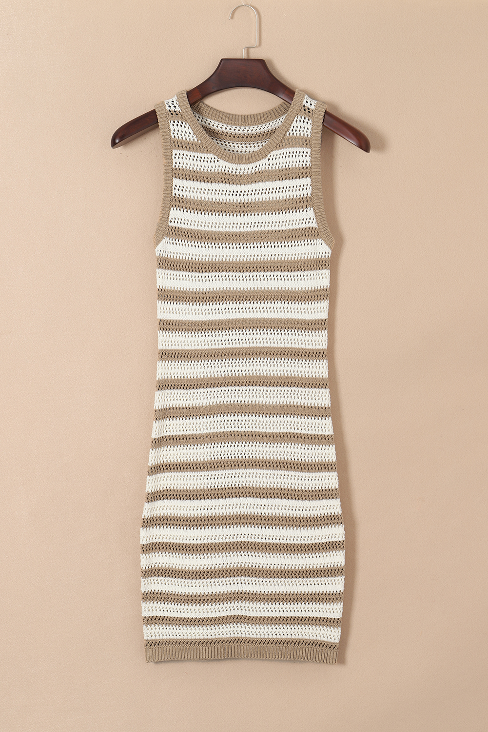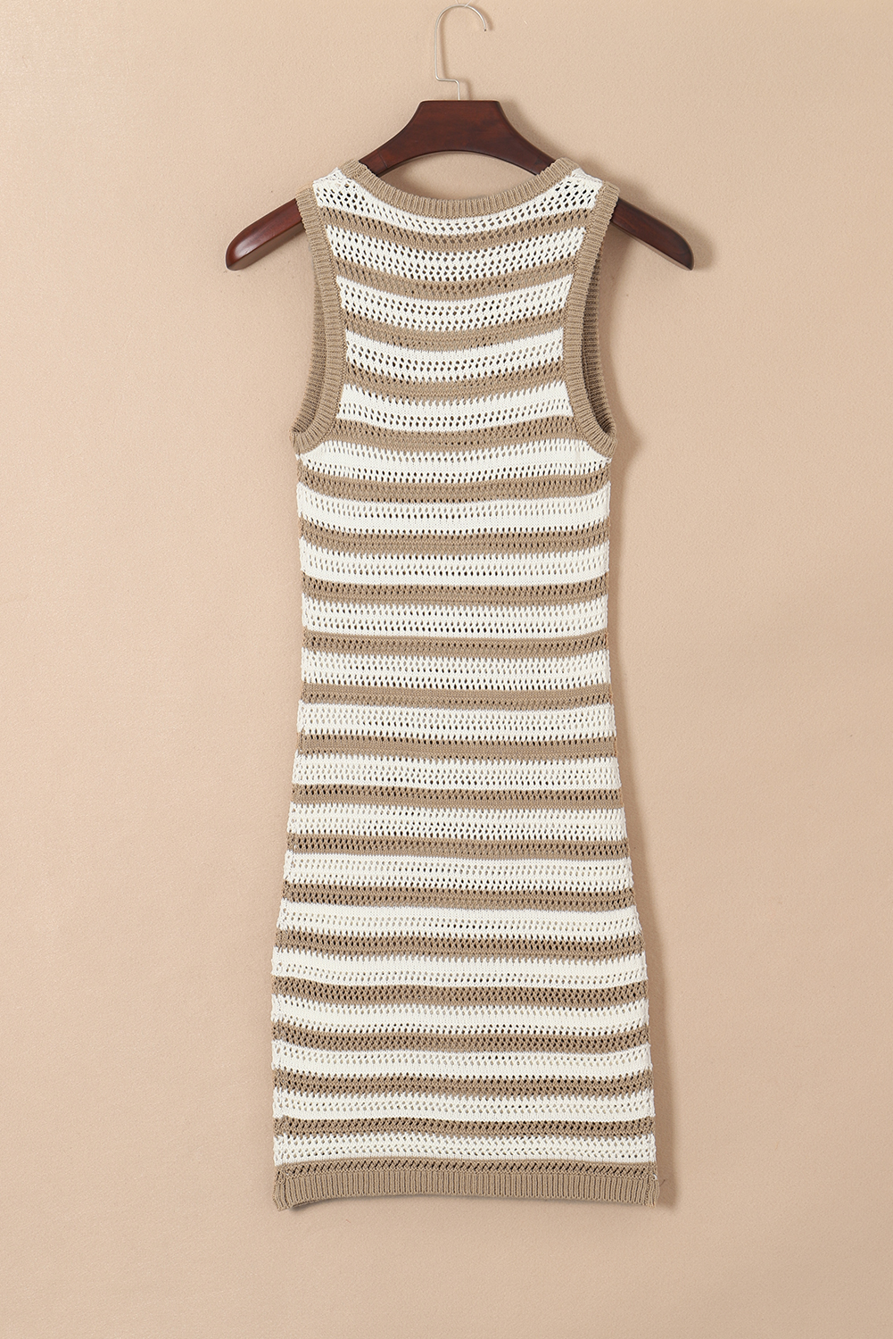 Khaki Stripe Hollowed Knit Sleeveless Sweater Dress
