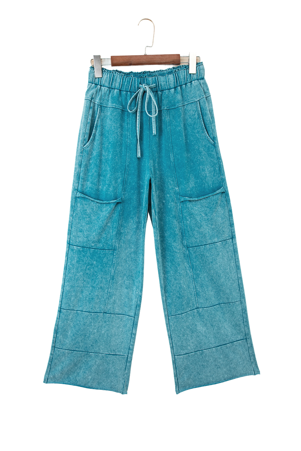 Lapis Mineral Wash Lace-up High Waist Raw Hem Patched Pocket Pants