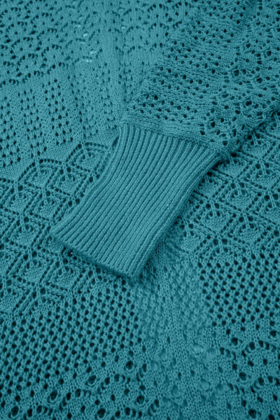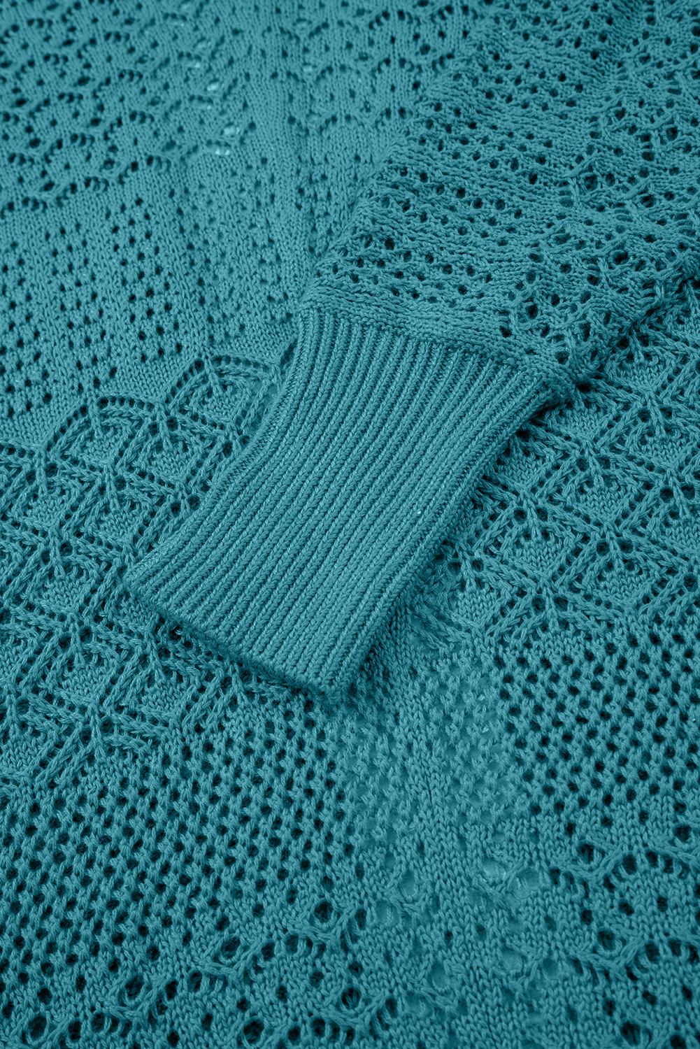 Lapis Mix Pattern Hollowed Knit Open Front Cardigan