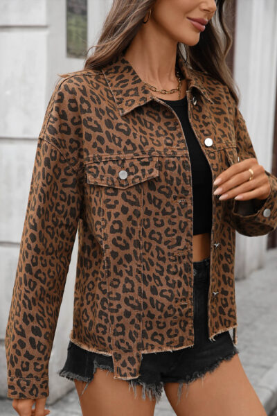 Leopard Print Cropped Denim Jacket with Street Vibe