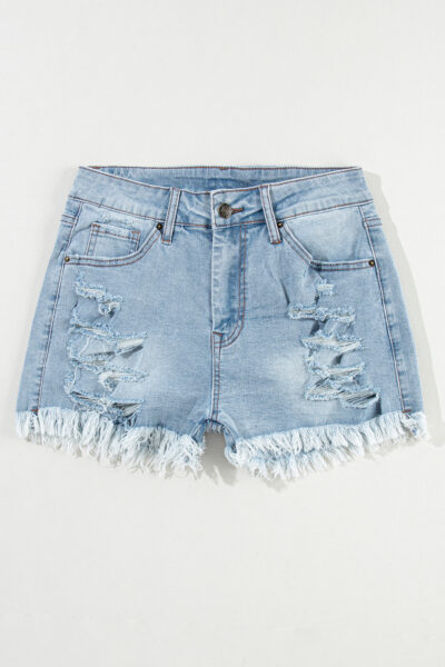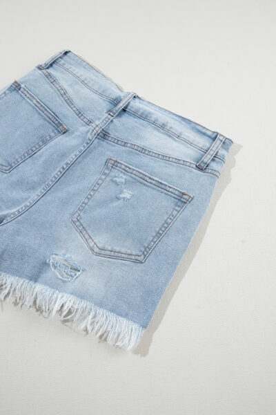 Light Blue Distressed Ripped Raw Hem High Waist Denim Shorts