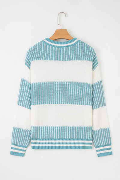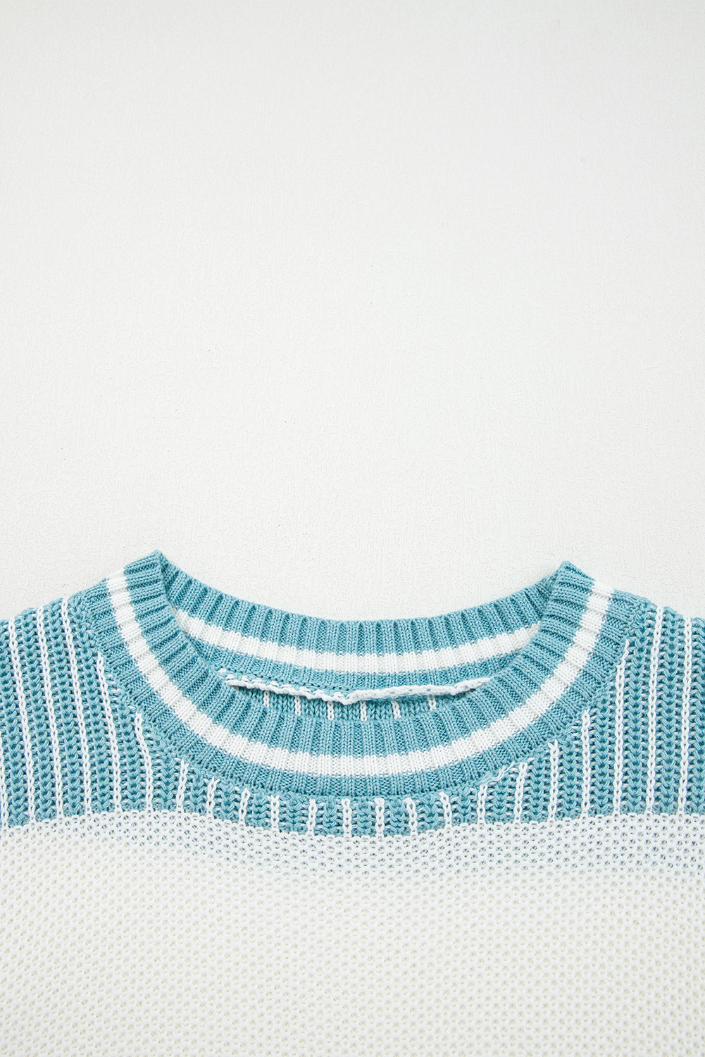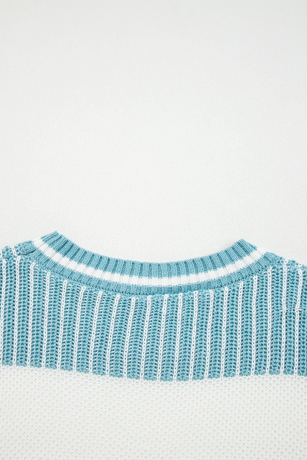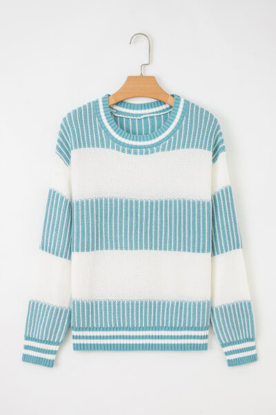 Light Blue Two Tone Striped Patchwork Drop Shoulder Loose Sweater