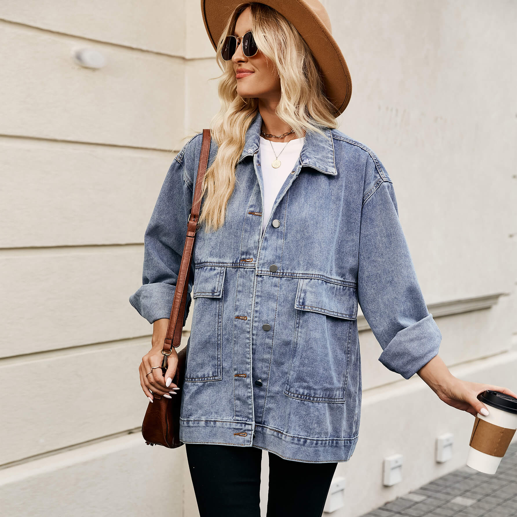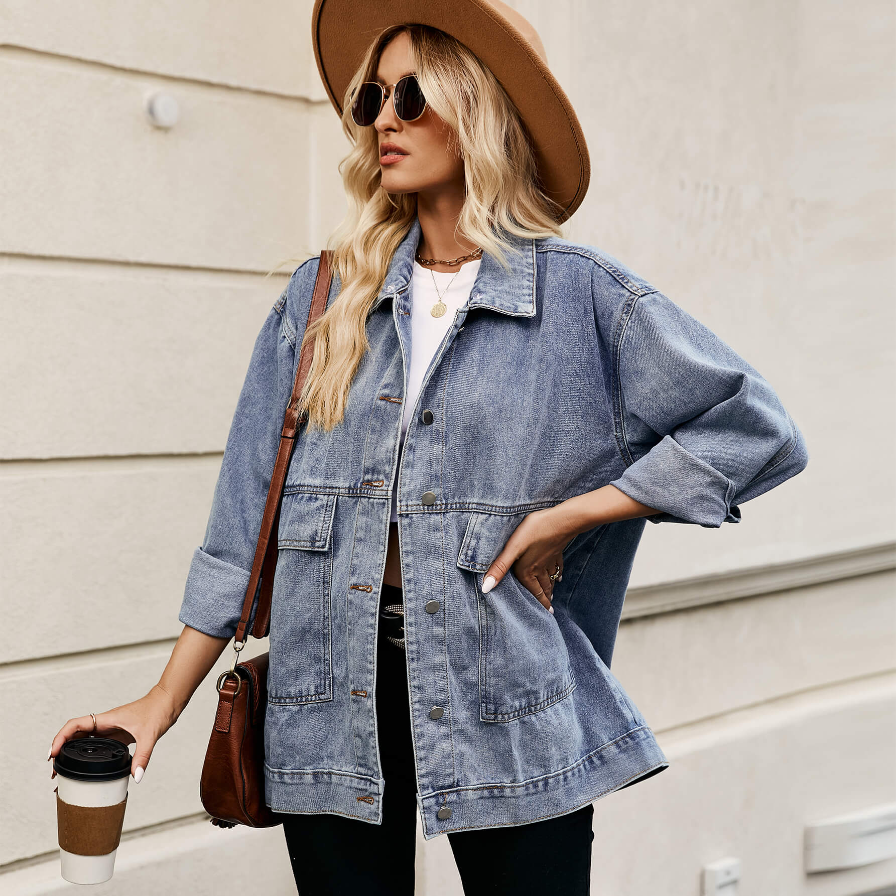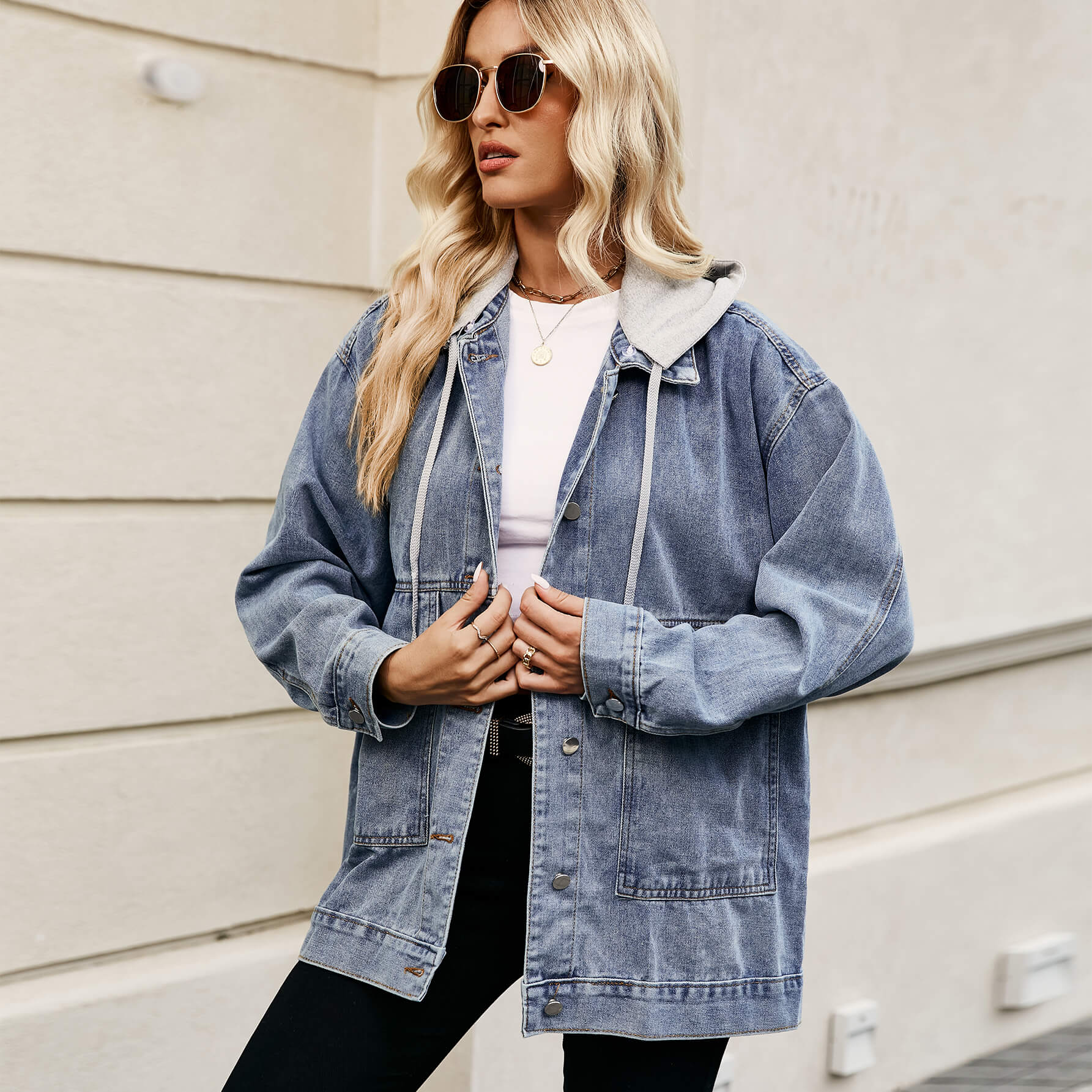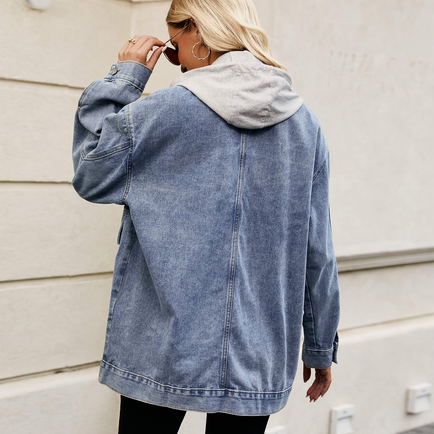 Light blue vintage loose-fitting denim casual jacket with detachable hood