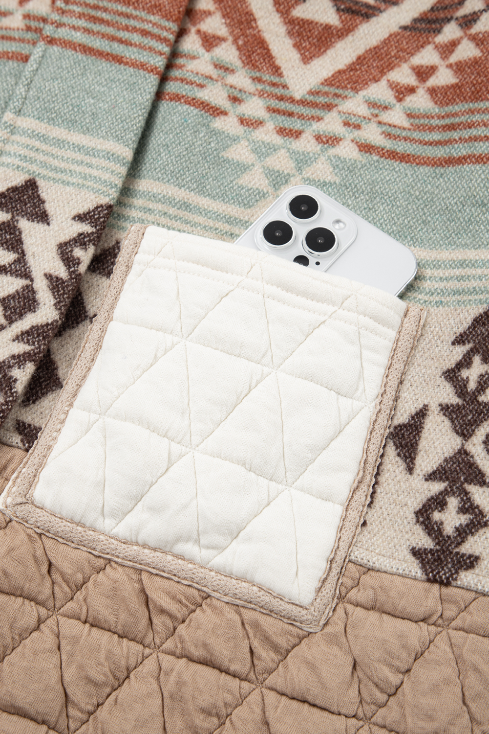 Light French Beige Aztec Quilted Patchwork Western Fashion Jacket