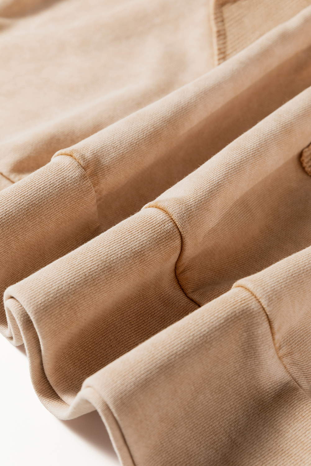 Light French Beige Mineral Wash Big Bow Patchwork Pullover Sweatshirt
