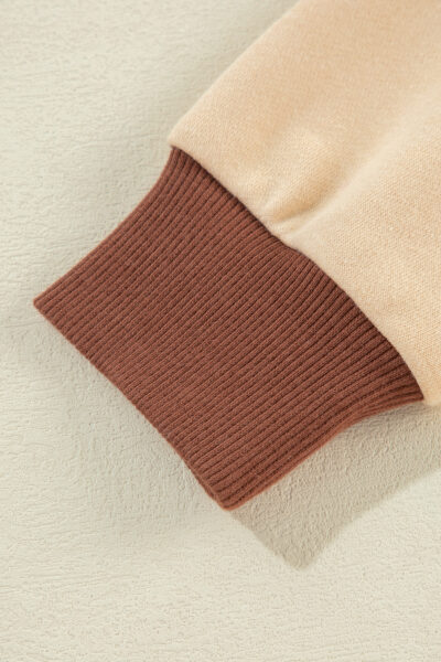Light French Beige Striped Colorblock Patchwork Collar Sweatshirt