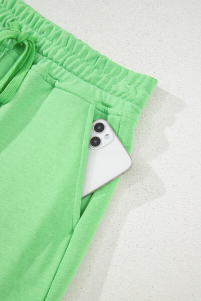 Light Green French Terry Drawstring Elastic Waistband Mini Skort with Pockets