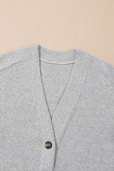 Light Grey 3 Pieces Rib Crop Camisole Matching Shorts Lounge Set with Cardigan