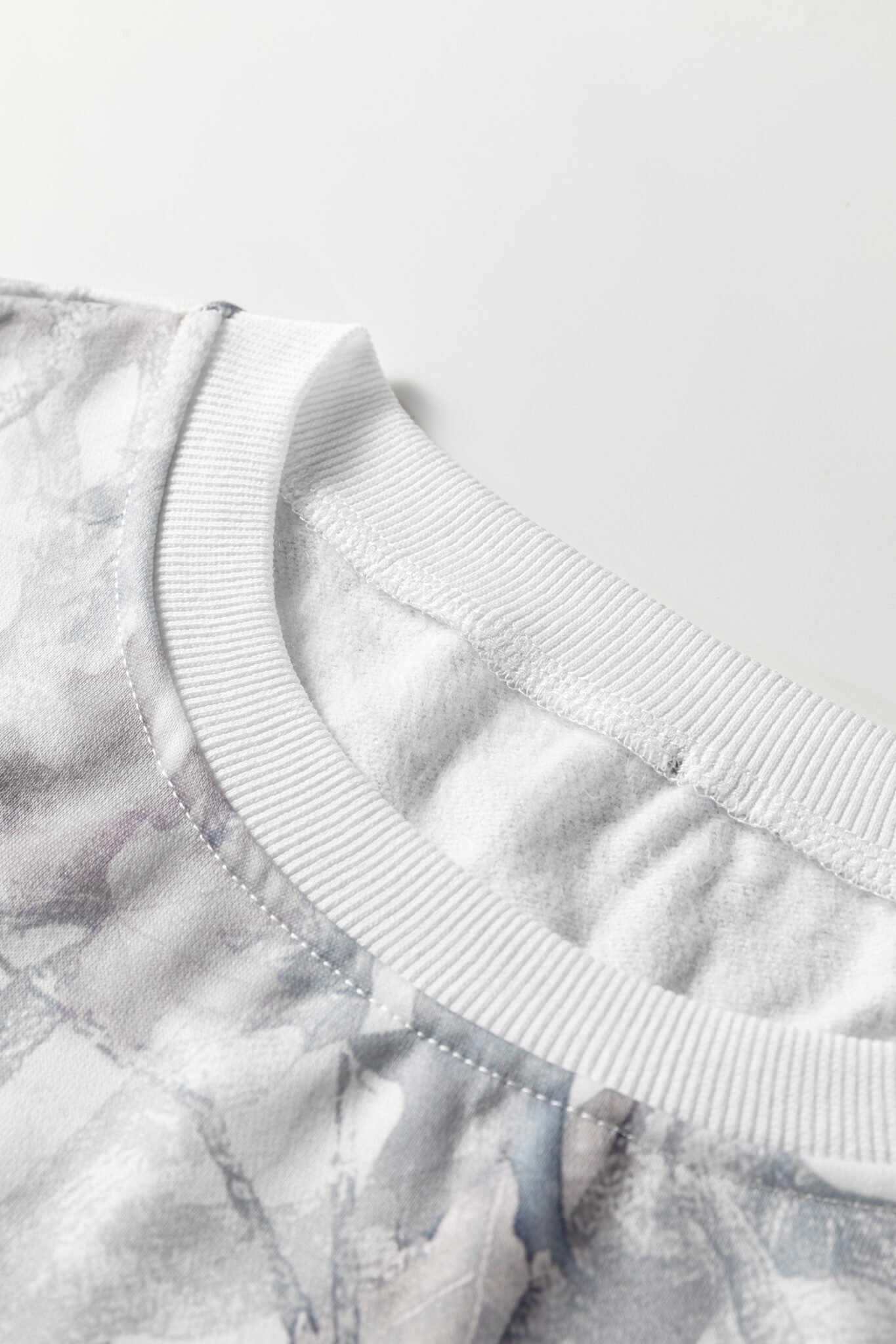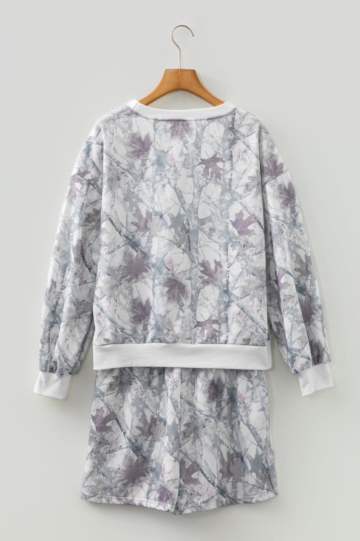Light Grey Abstract Woodland Camo Print Baggy Pullover Drawstring Shorts Set