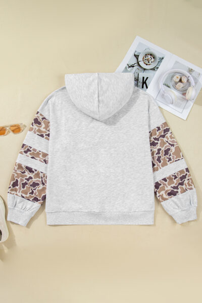 Light Grey Camouflage Patchwork Asymmetric Sleeve Plus Size Hoodie