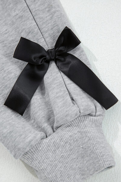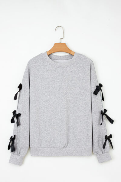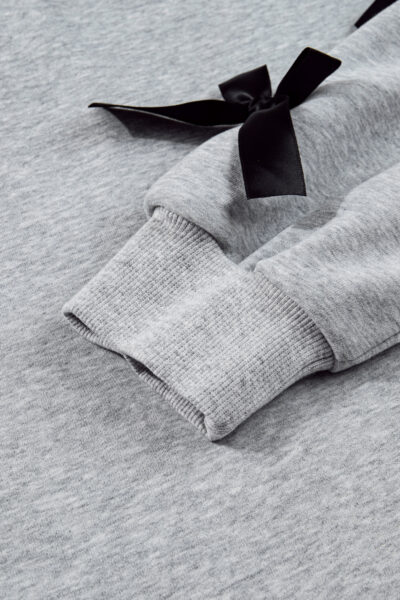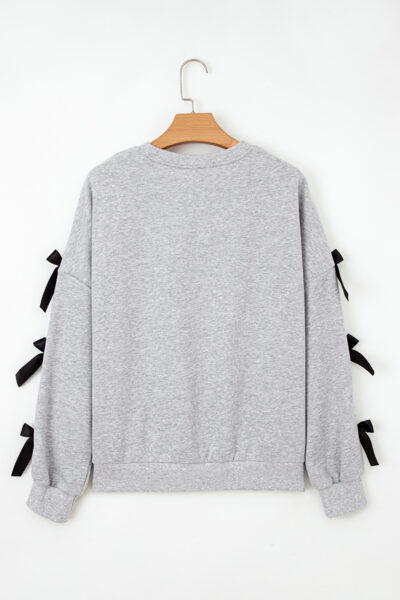 Light Grey Contrast Bow Applique Drop Sleeve Round Neck Sweatshirt
