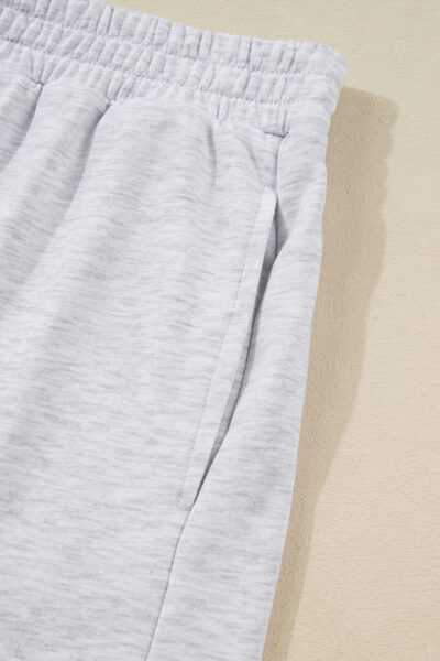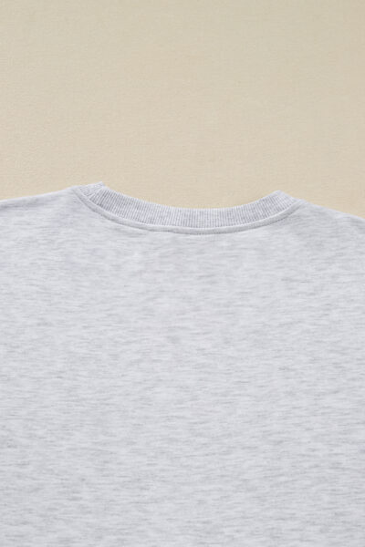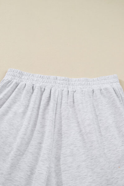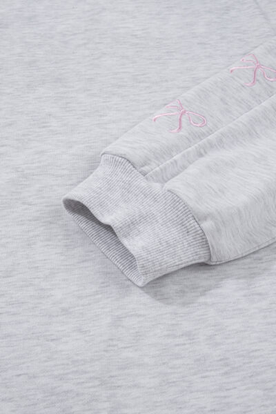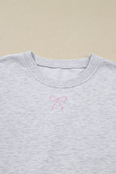 Light Grey Girly Bow Embroidered Puff Sleeve Pullover Loose Shorts Plus 2pcs Outfit