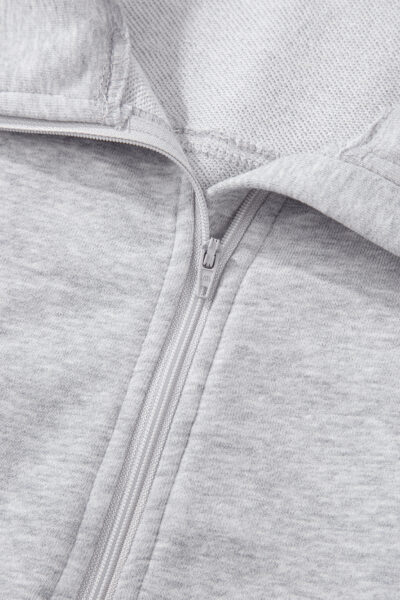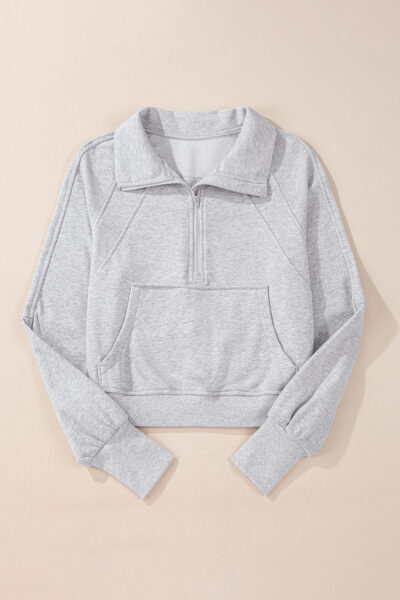 Light Grey Quarter Zip Stand Neck Kangaroo Pocket Sweatshirt