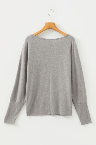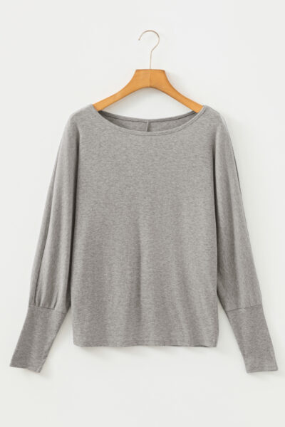 Light Grey Solid Color Extended Cuffs Long Sleeve Top