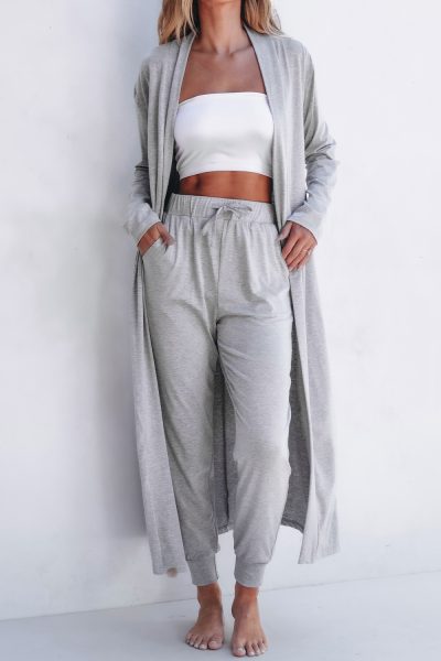 Light Grey Split Long Cardigan and Skinny Pants Lounge Set