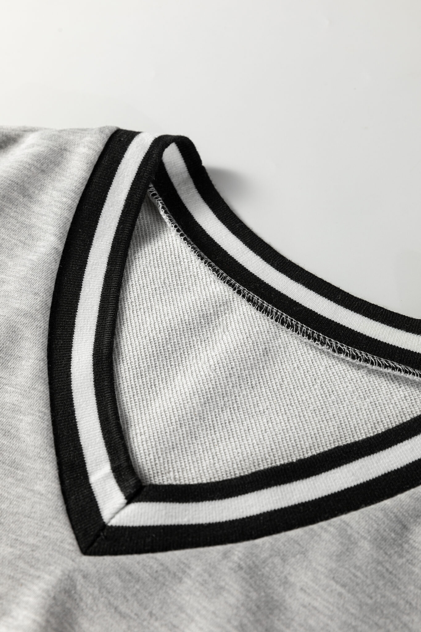 Light Grey Striped Trim V Neck Long Sleeve Preppy T Shirt Dress