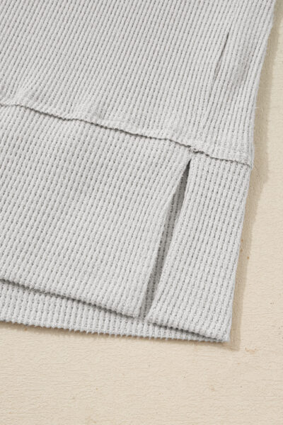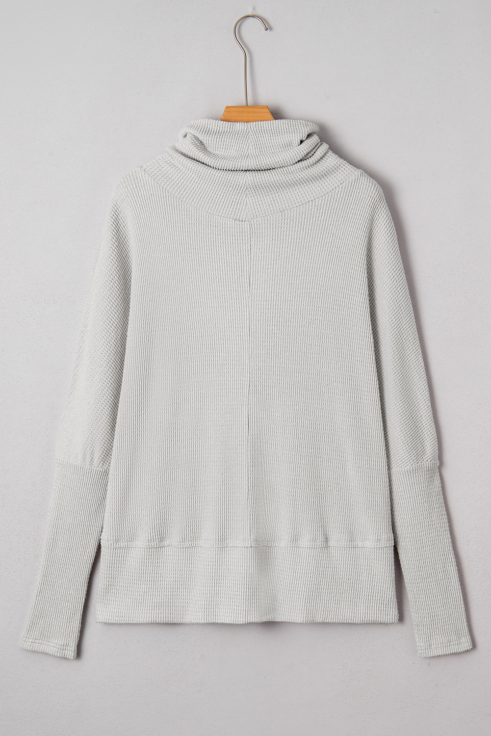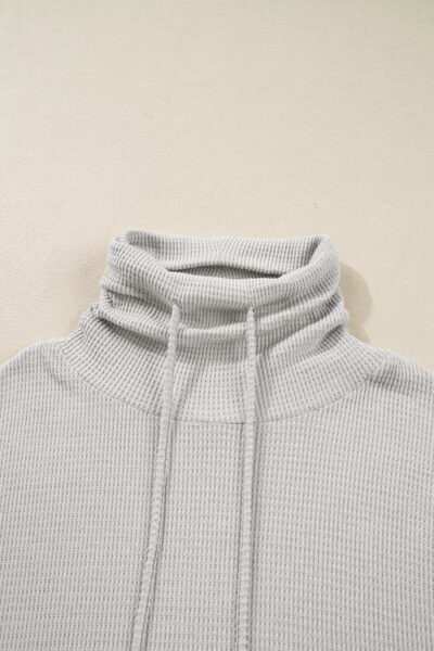 Light Grey Textured Knit Drawstring Cowl Neck Oversize Top with Side Slits