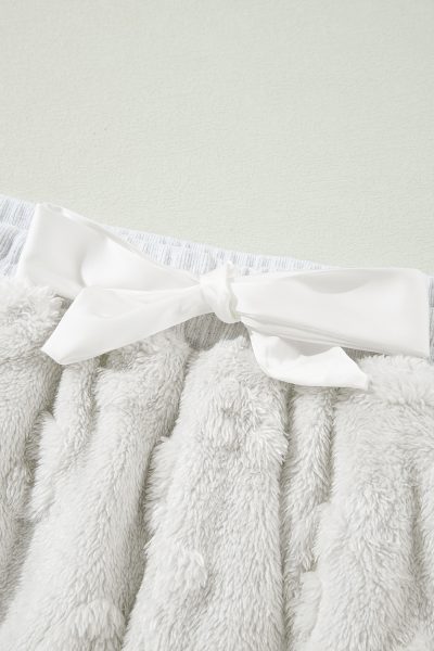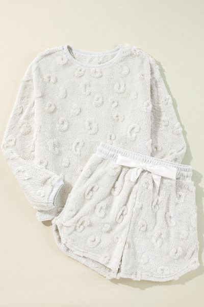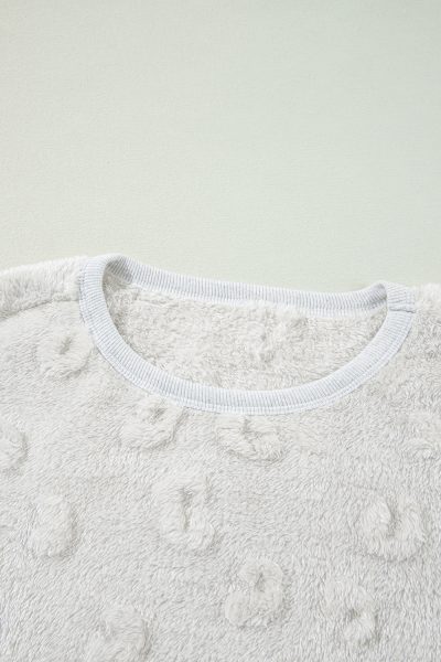 Light Grey Textured Leopard Fleece Loose Two Piece Lounge Set