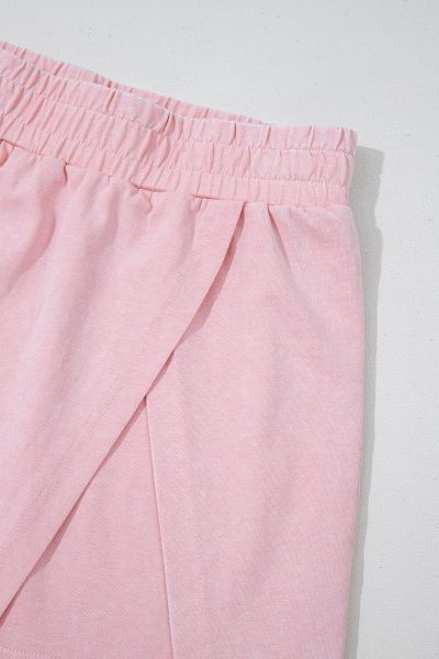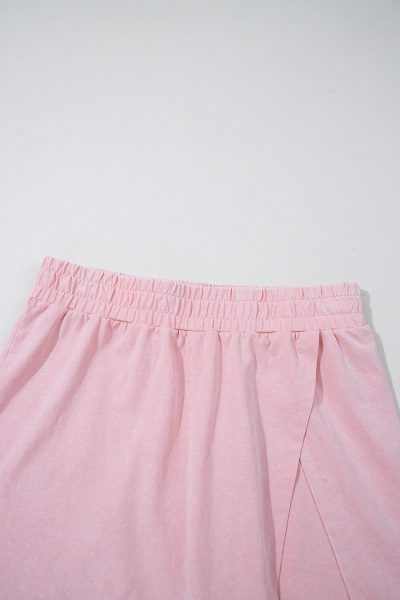 Light Pink 2 Pieces Mineral Wash Cotton Tank Top Lined Split Skirt Set