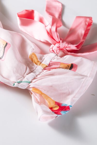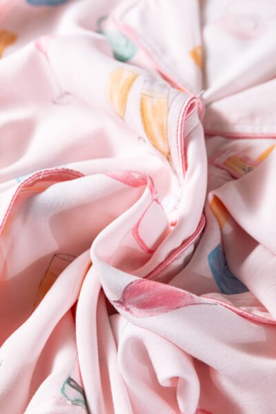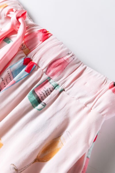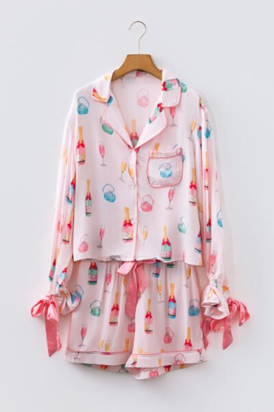 Light Pink Christmas Wine Glass Print Bow Knot Two Piece Pajama Set