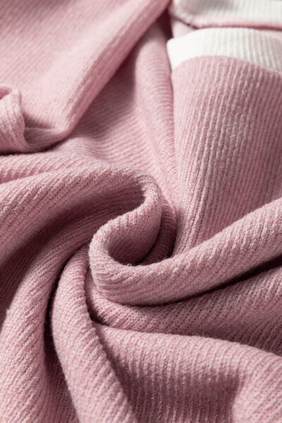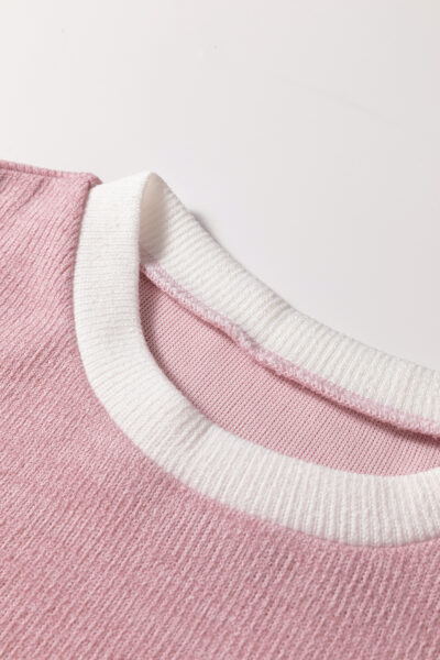 Light Pink Contrast Color Trim Knit Drop Shoulder Loose Top