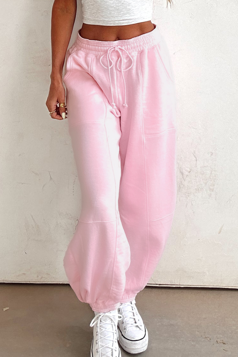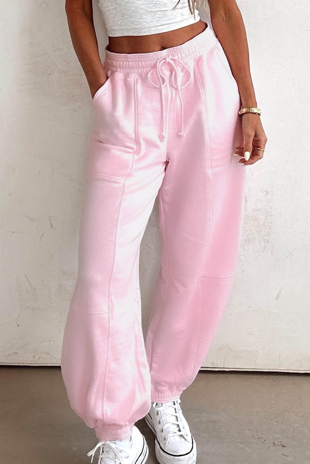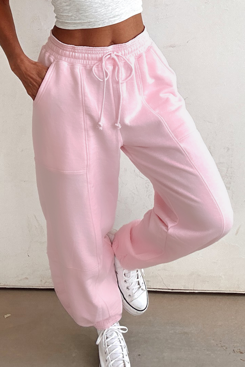 Light Pink Drawstring Elastic Waistband Solid Color Jogger Pants