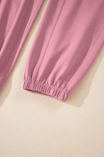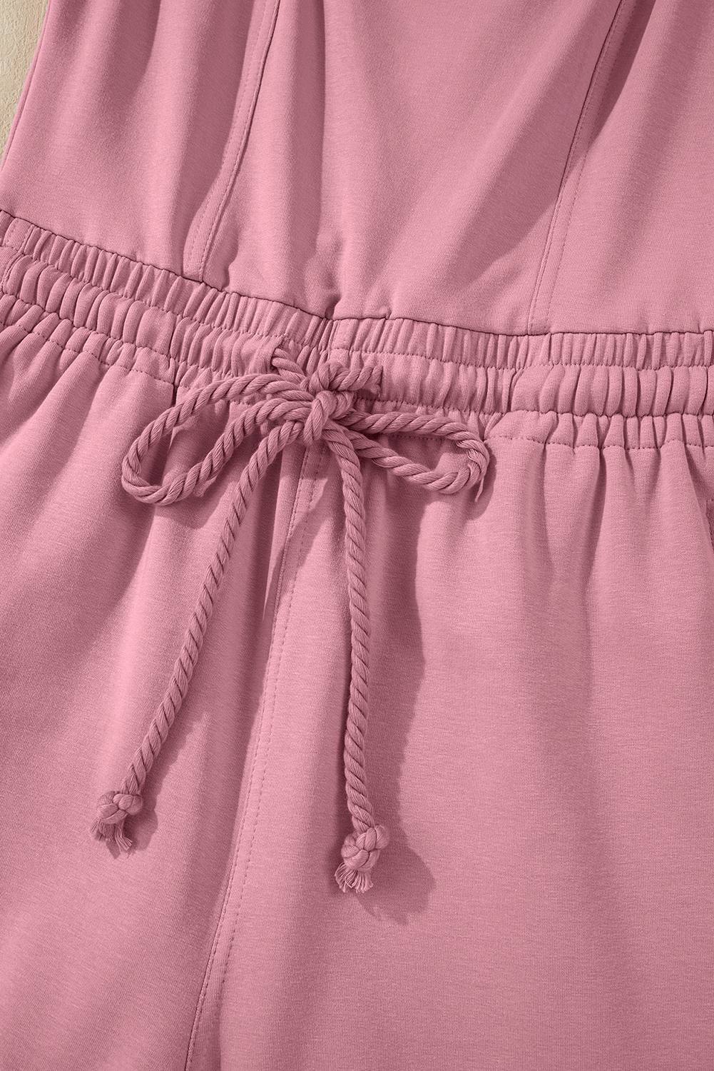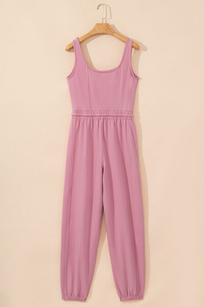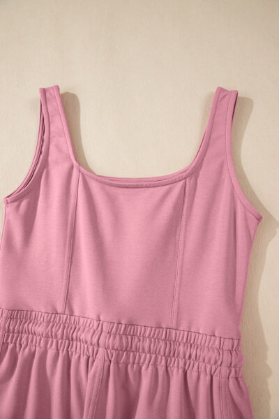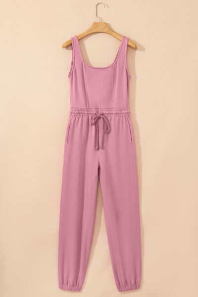 Light Pink Lace-up Elastic Waist Sleeveless Square Neck Jumpsuit