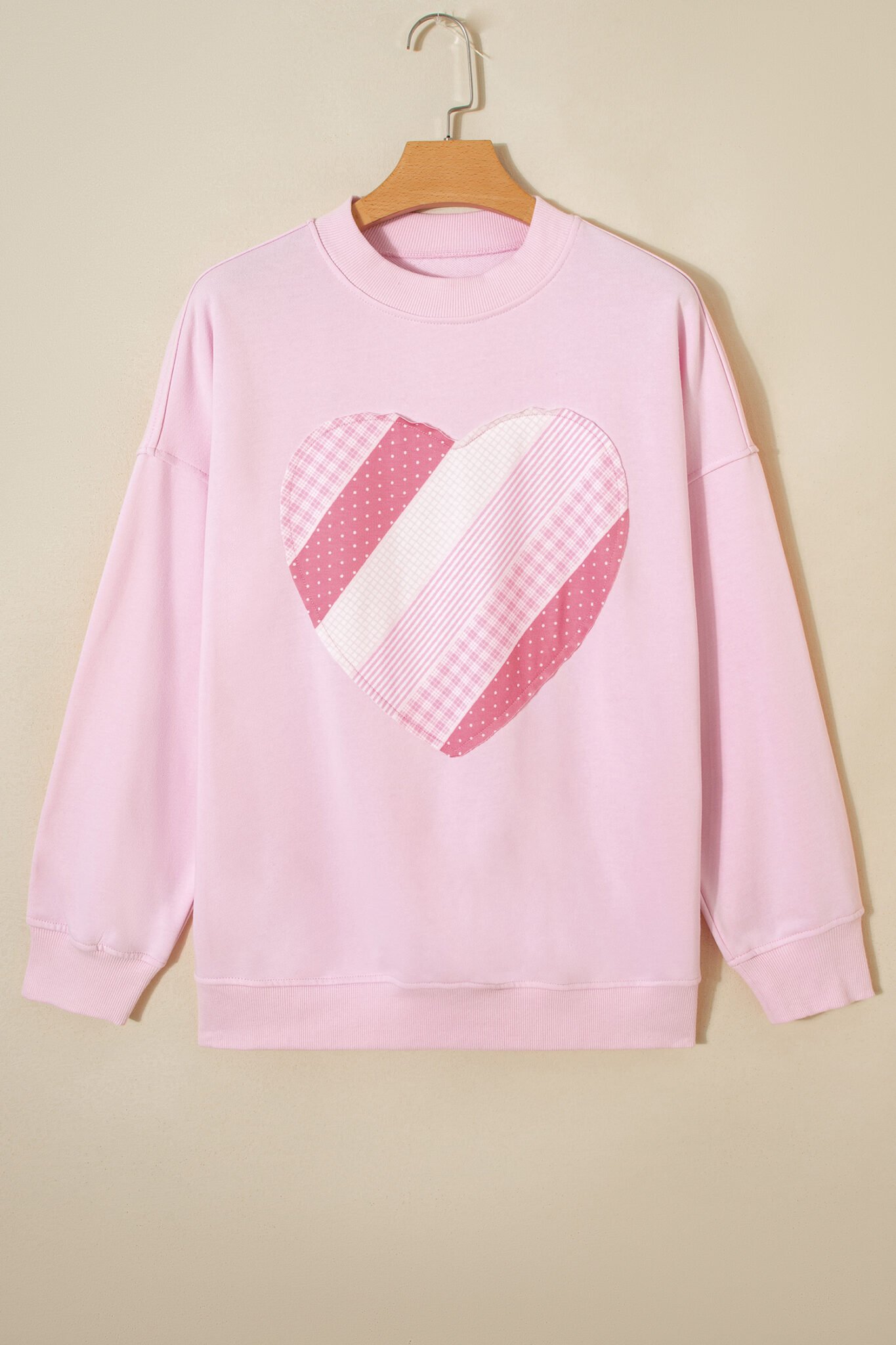 Light Pink Sweetheart Patchwork Mockneck Oversize Sweatshirt