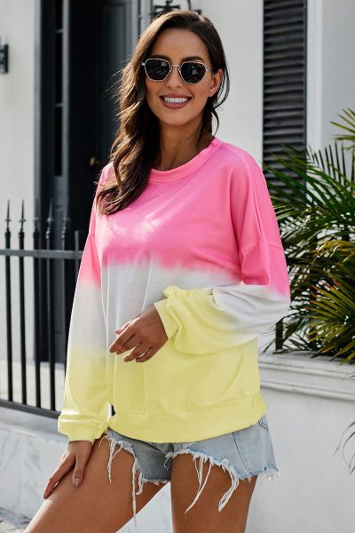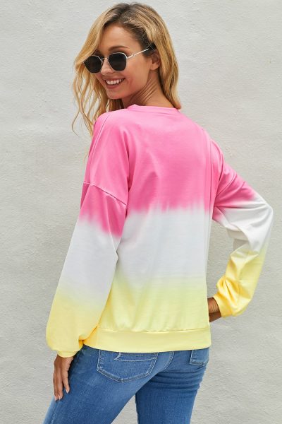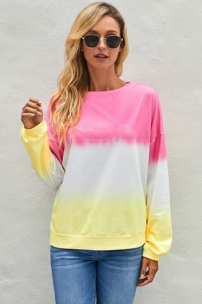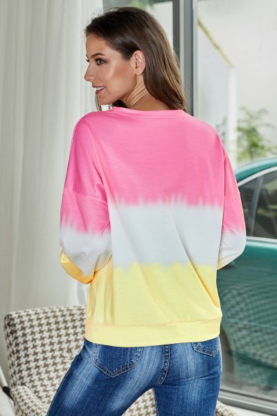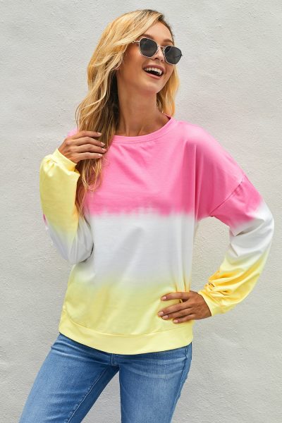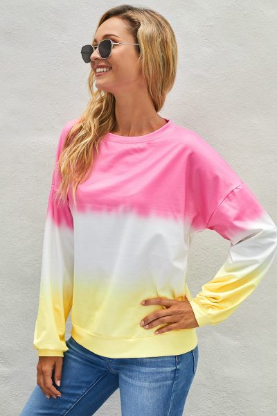 Madilyn Womens Color-Block Tie Dye Long Sleeve Pullover Sweatshirt Pink