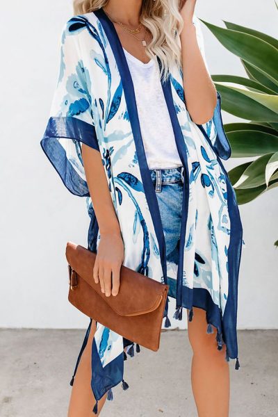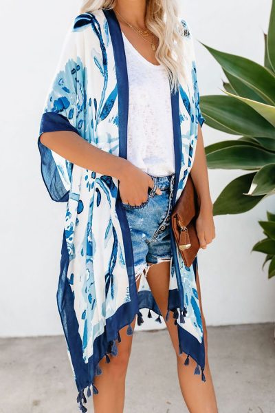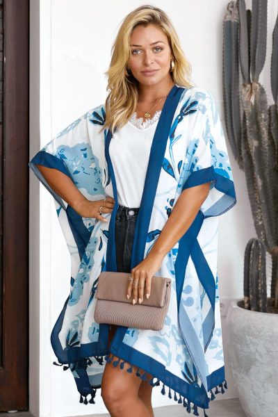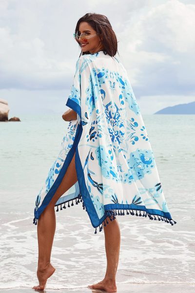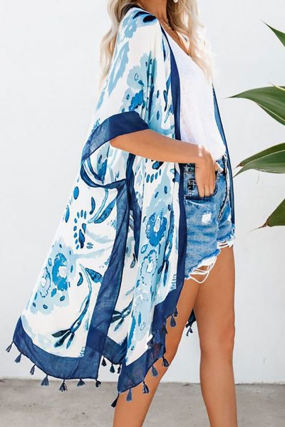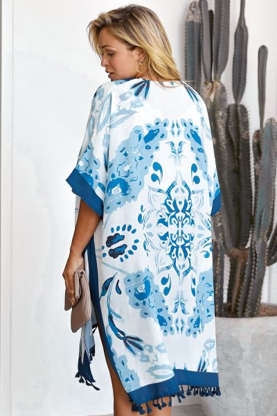 Marcie Bohemian Print Open Front Loose Kimono Beach Cover up Blue