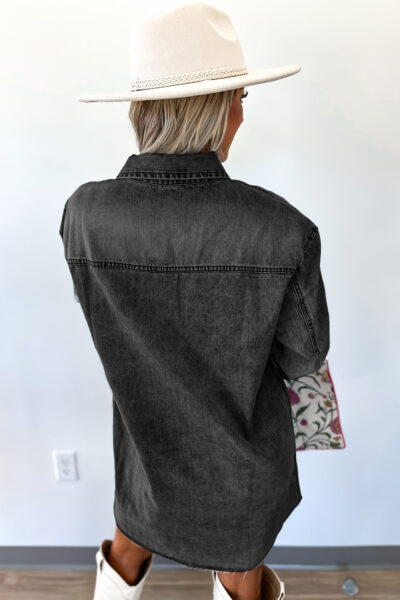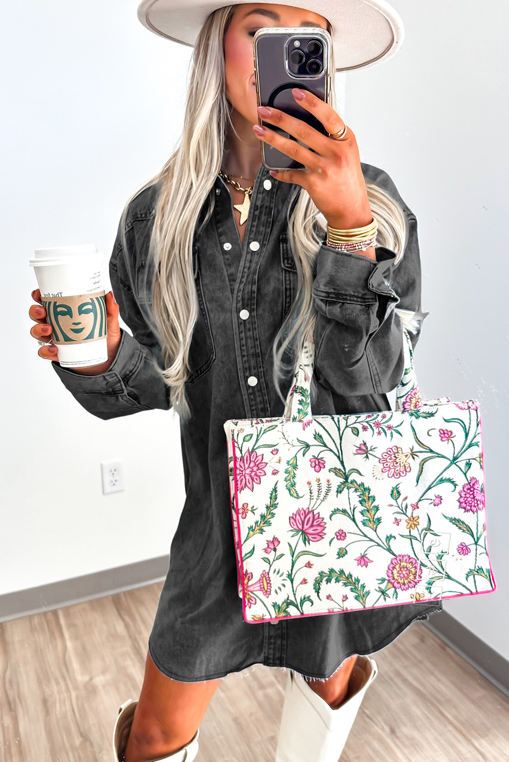 Medium Grey Beau Chest Pocket Raw Hem Denim Loose Shirt Dress