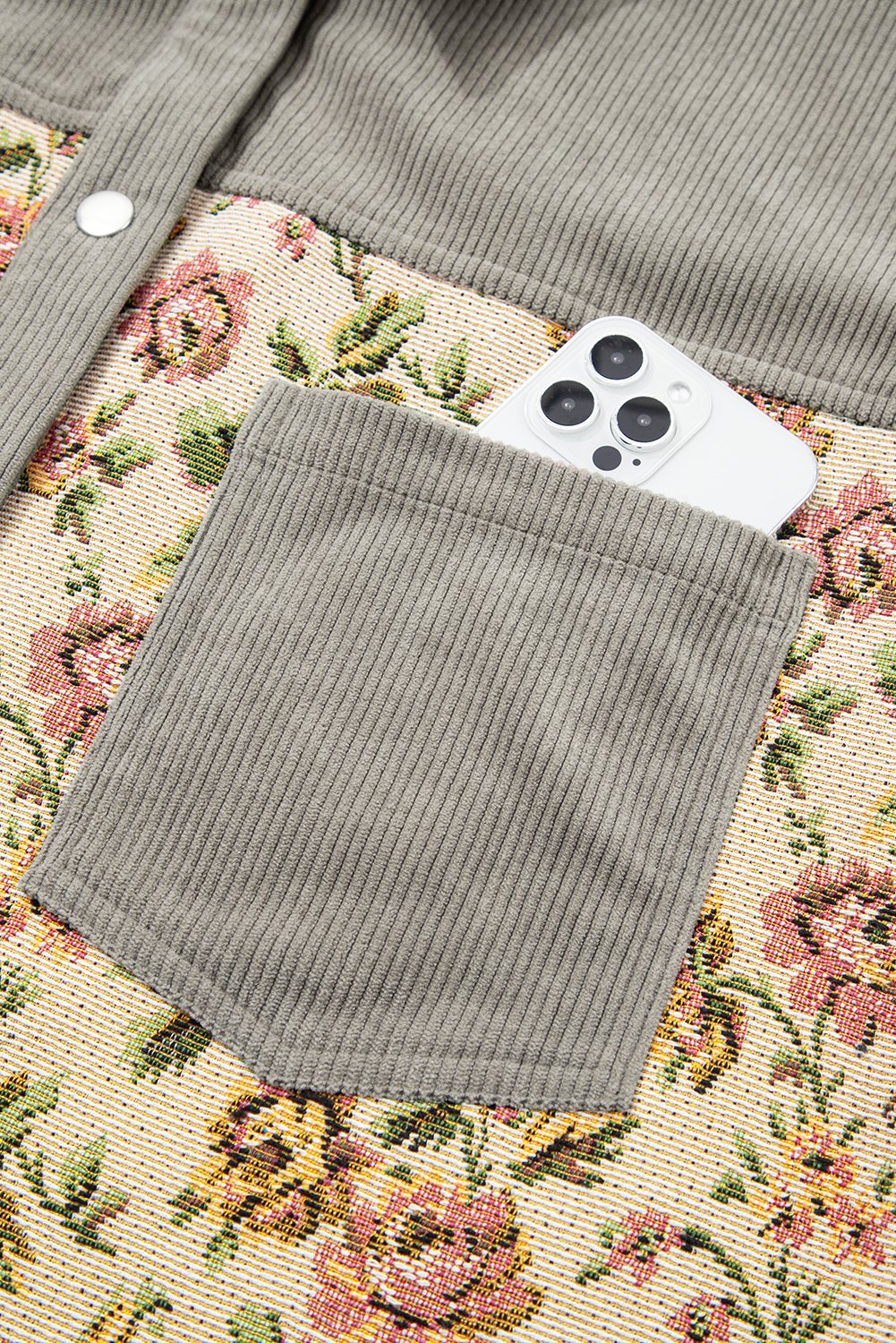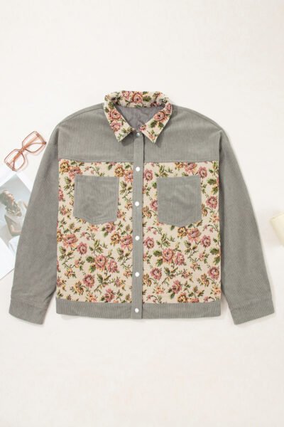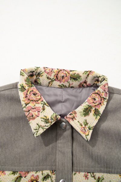 Medium Grey Corduroy Floral Patchwork Vintage Jacket