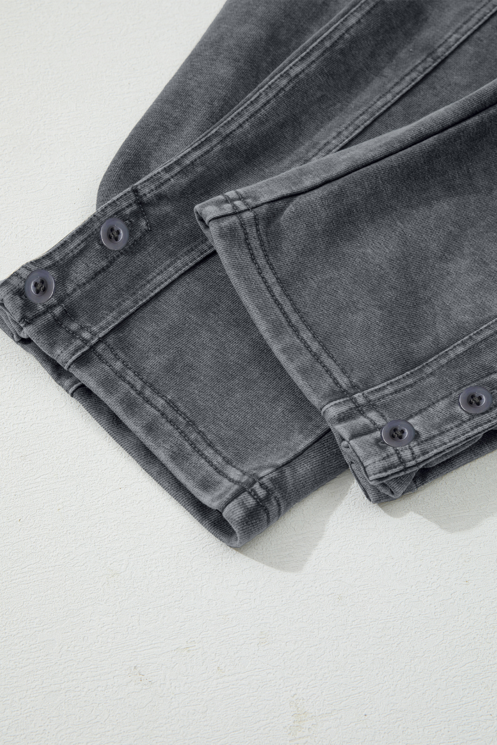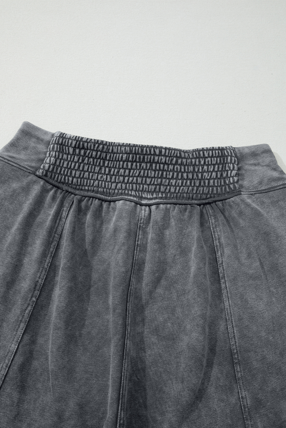 Medium Grey Mineral Wash Jogger Style High Waist Casual Pants