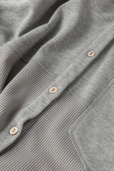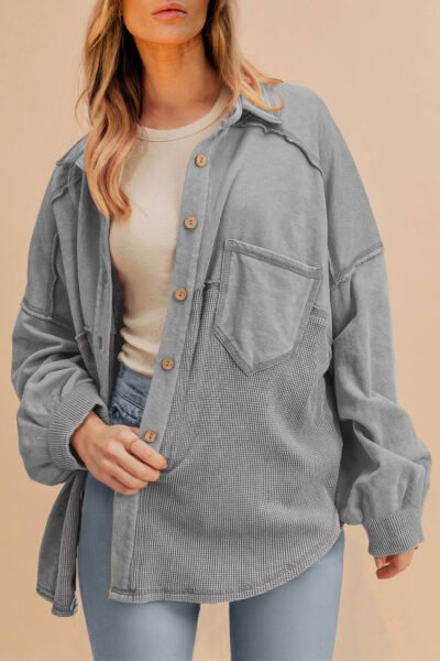 Medium Grey Waffle Knit Patchwork Exposed Seam Loose Shacket