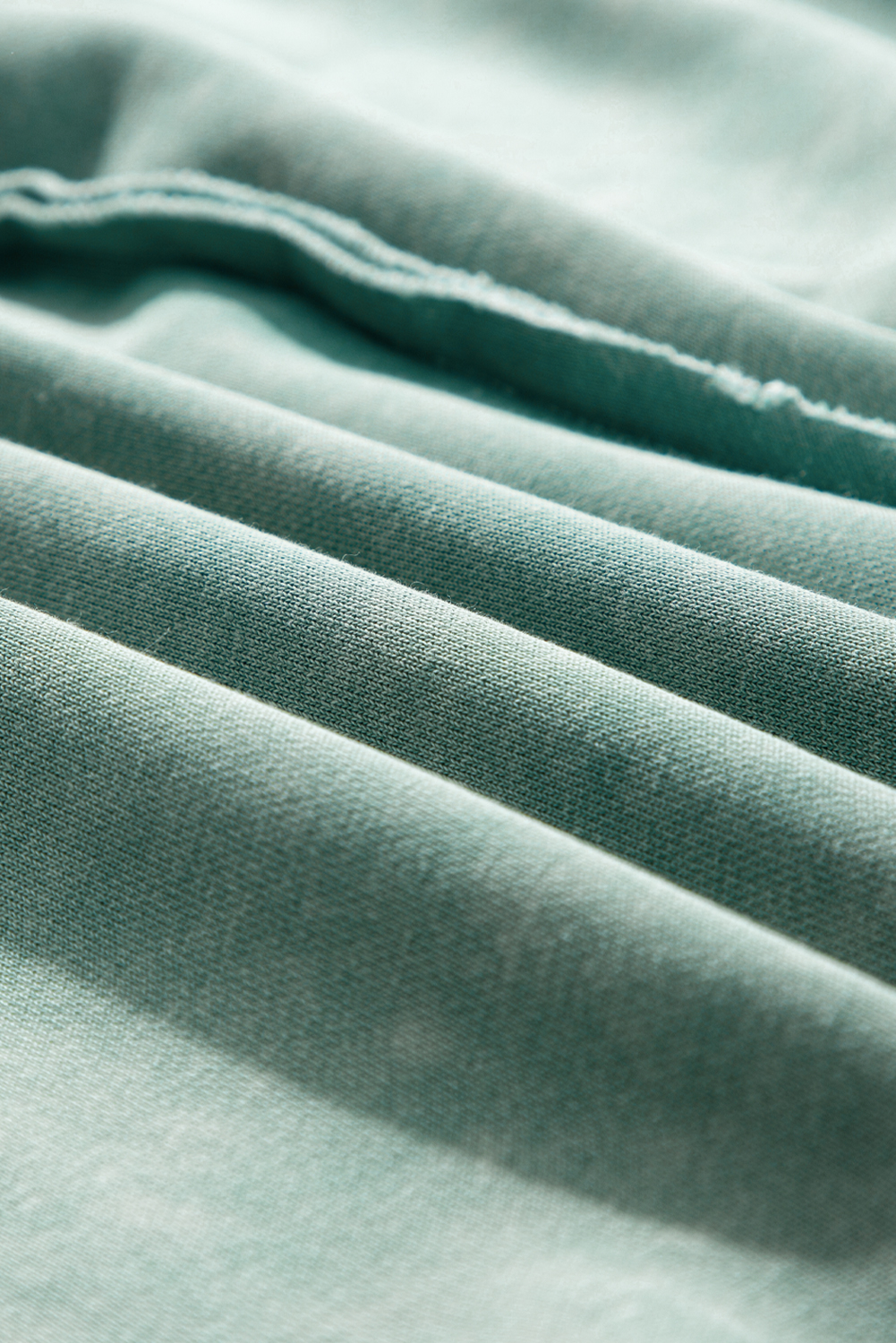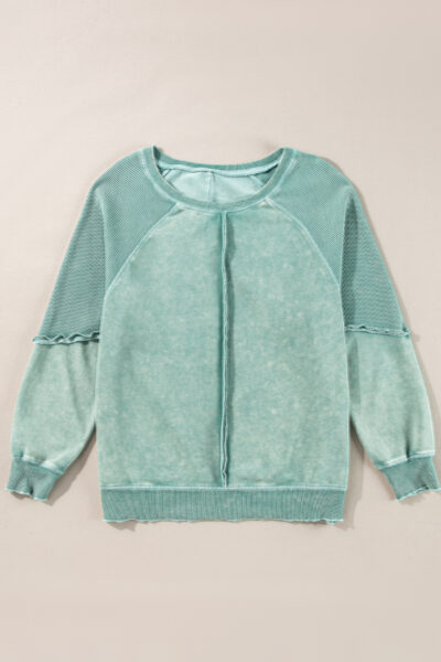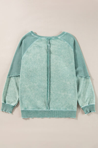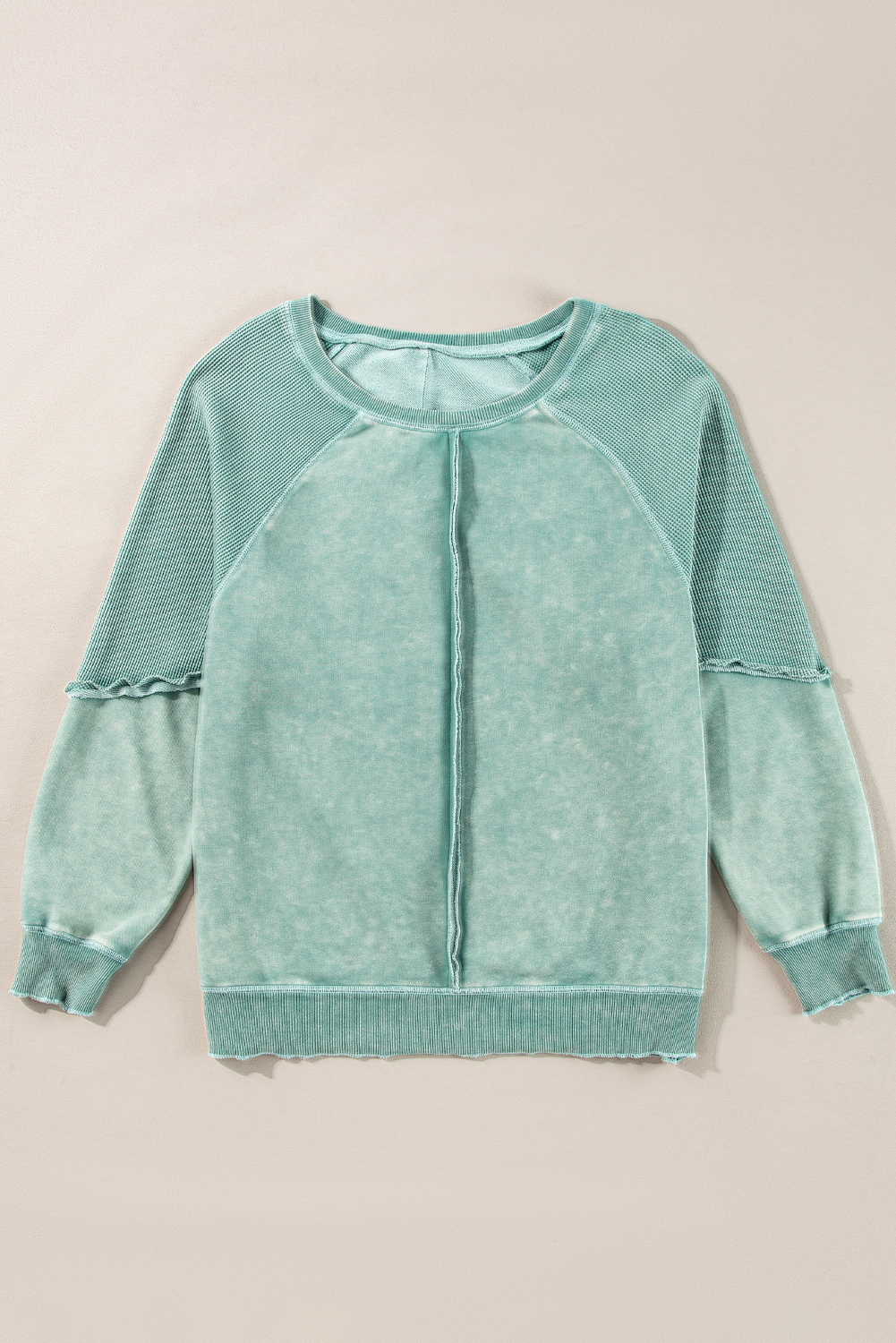 Mineral Blue Solid Waffle Knit Patchwork Raglan Sleeve Sweatshirt