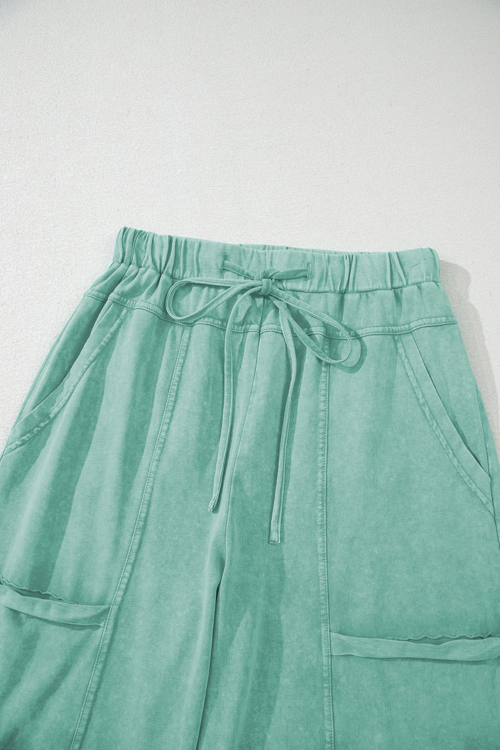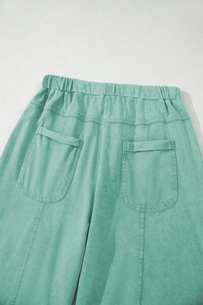 Mint Green Mineral Wash Exposed Seam Drawstring Elastic Waistband Wide Leg Cargo Pants