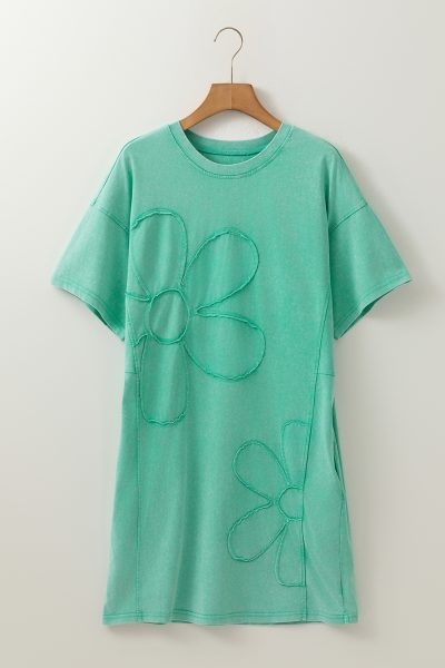 Mint Green Mineral Wash Flower Patchwork Mini T Shirt Dress