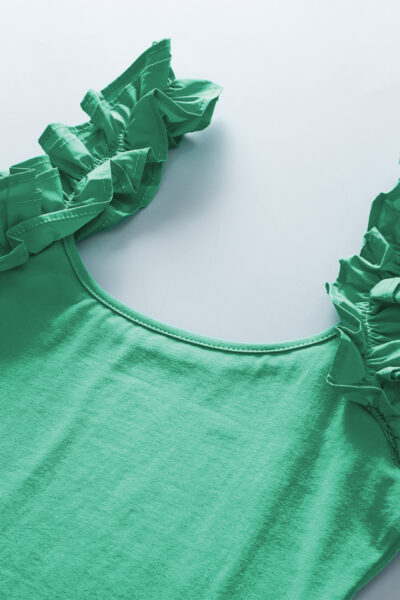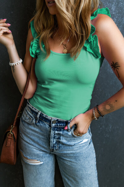Mint Green Ruffled Wide Straps Slim Tank Top