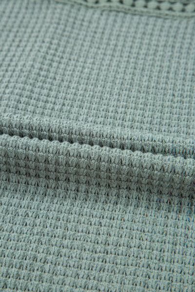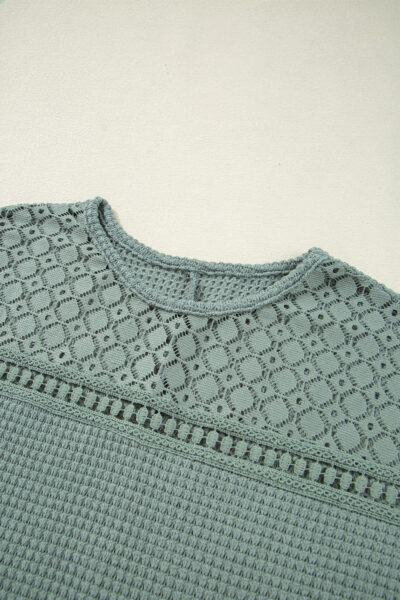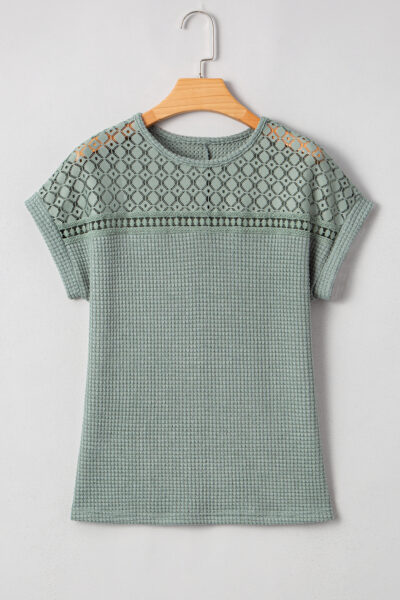 Mist Green Lace Patchwork Waffle Short Sleeve Top