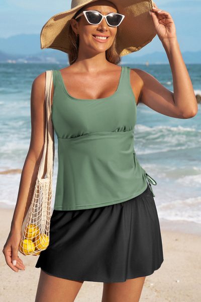 Mist Green Scoop Neck Adjustable Tankini and Matching Skort Bathing Suit