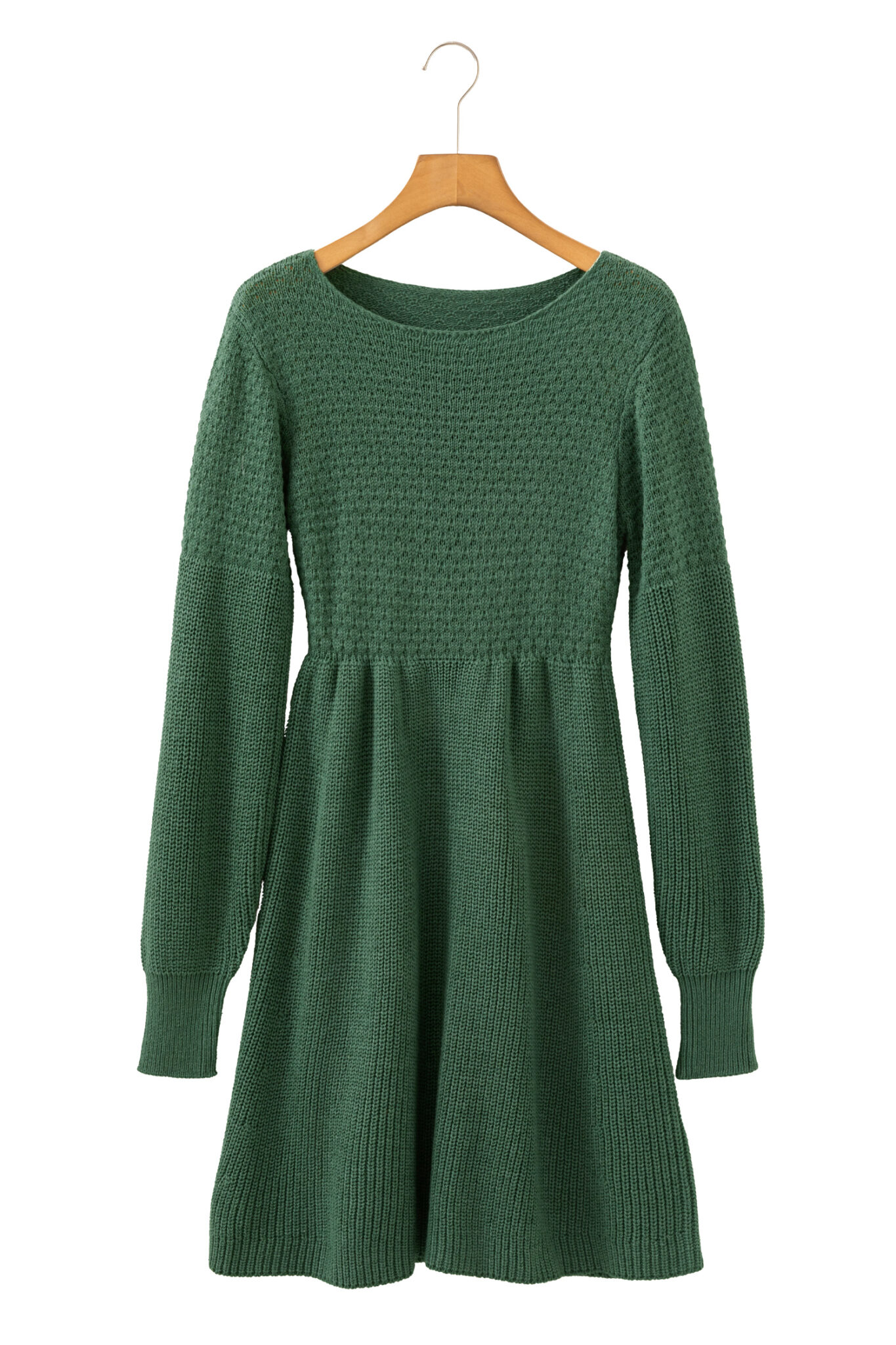 Mist Green Solid Lantern Sleeve Empire Waist Short Sweater Dress