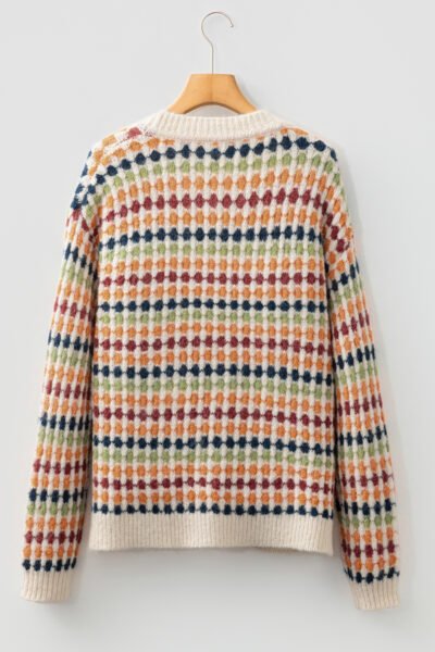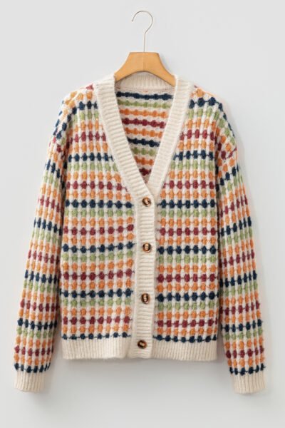 Multicolour Dotty Pattern Knit Button Front V Neck Sweater Cardigan