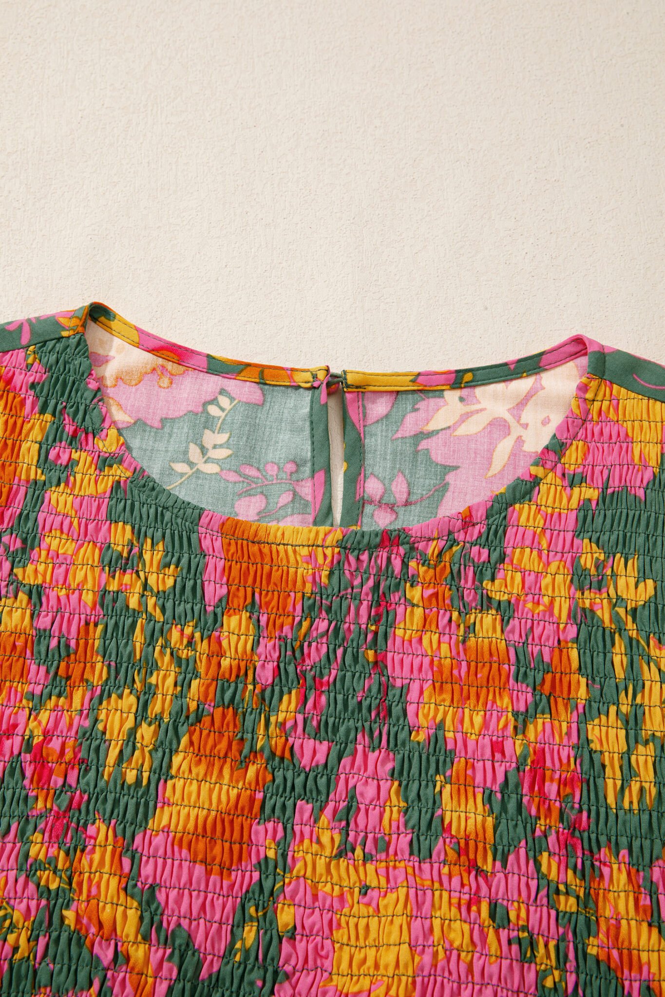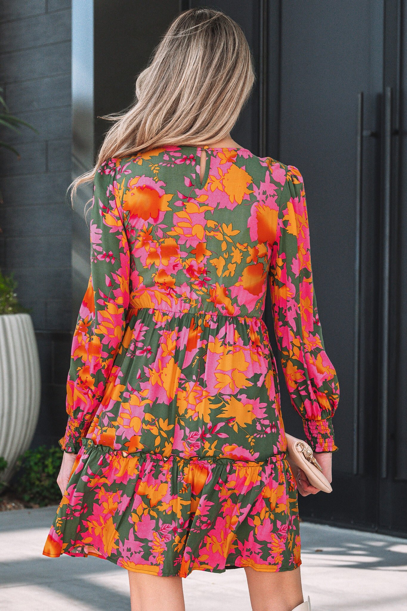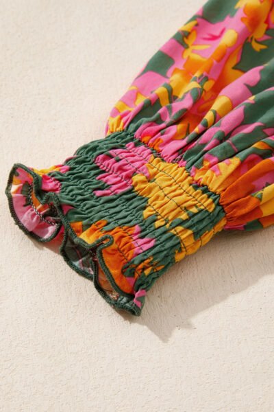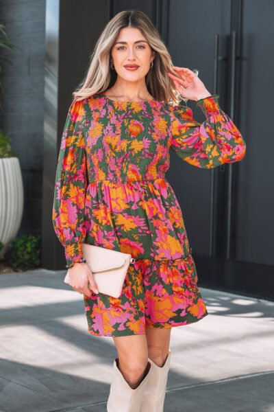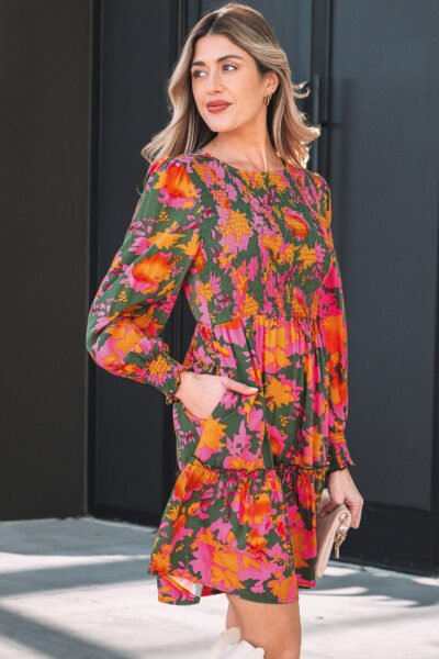 Multicolour Floral Print Long Sleeve Smocked Ruffled Mini Dress