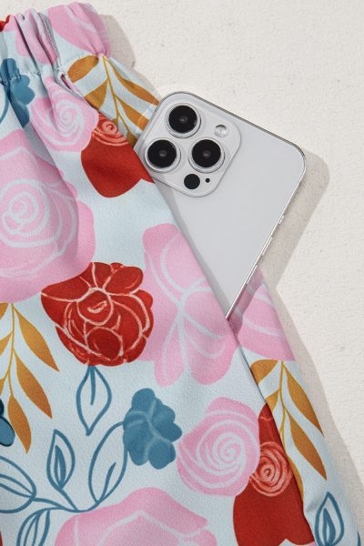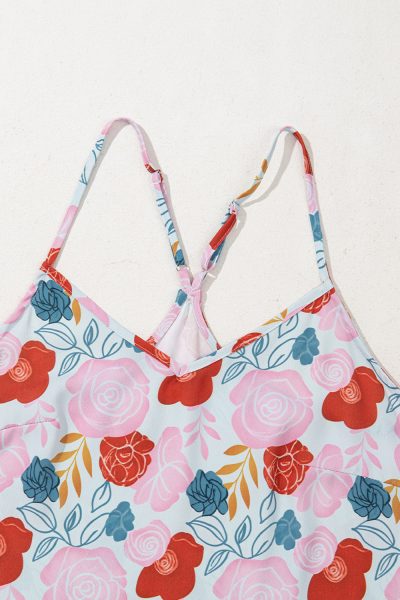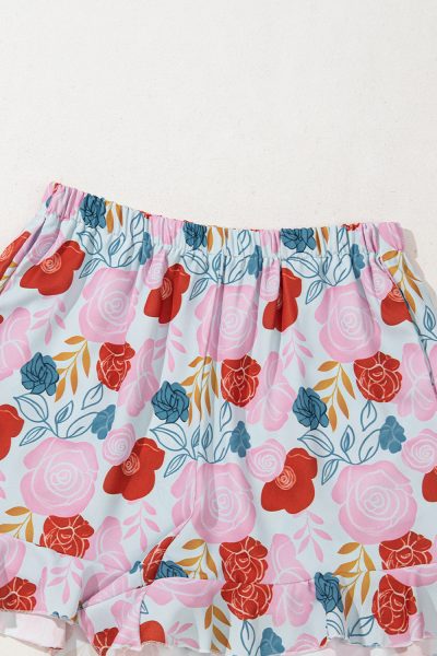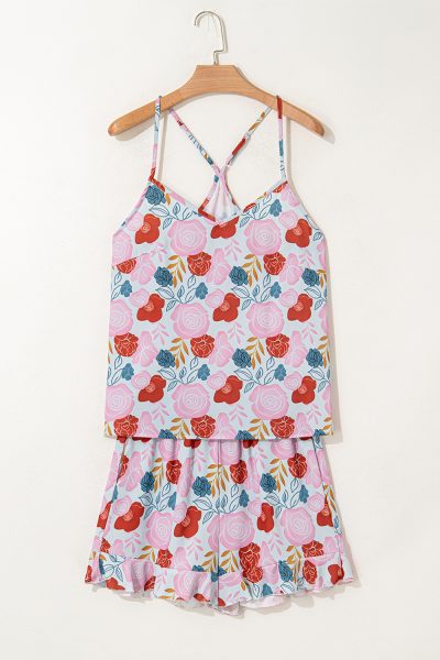 Multicolour Floral V Neck Cami Top and Ruffled Shorts Lounge Set
