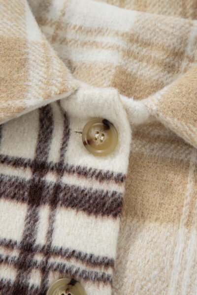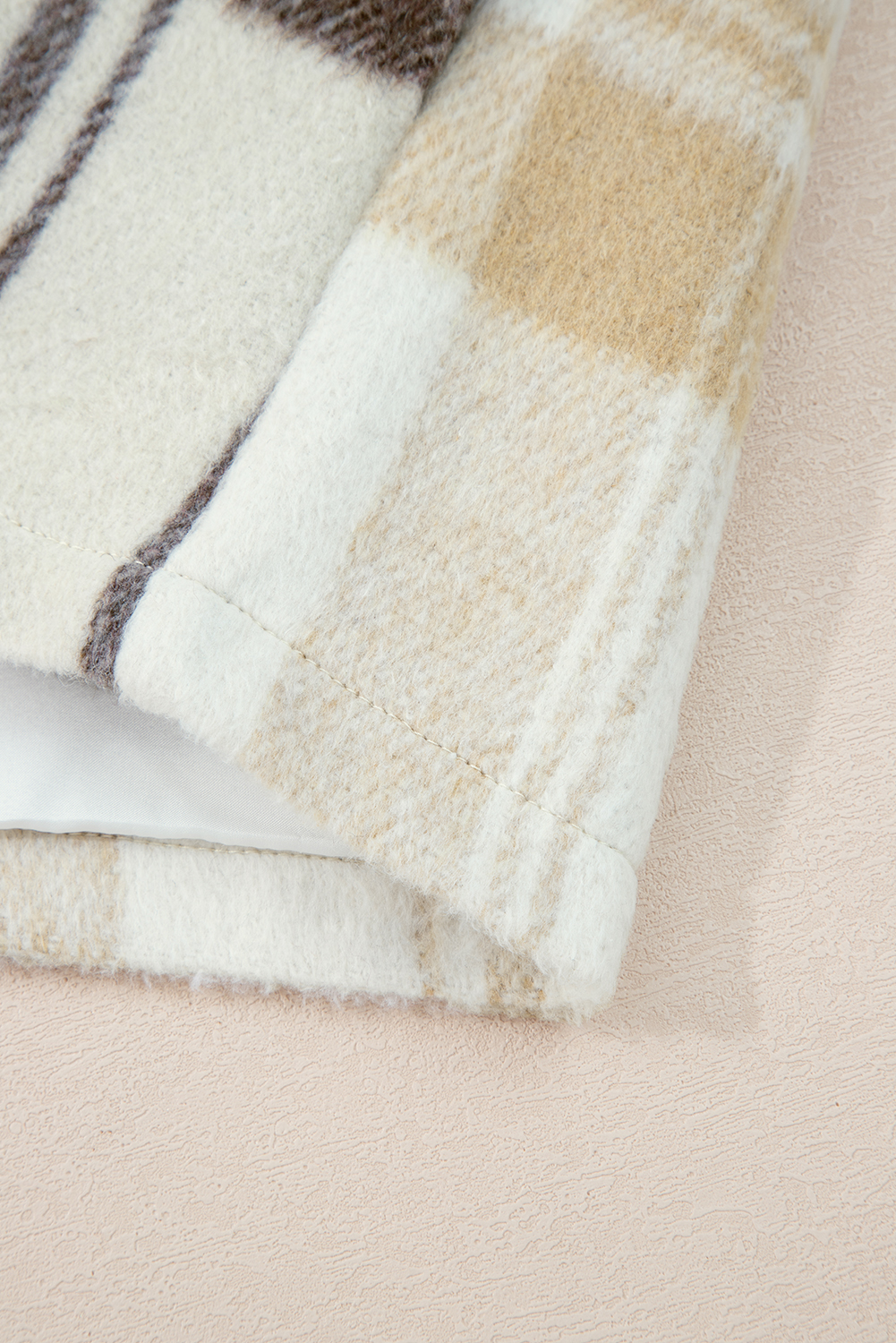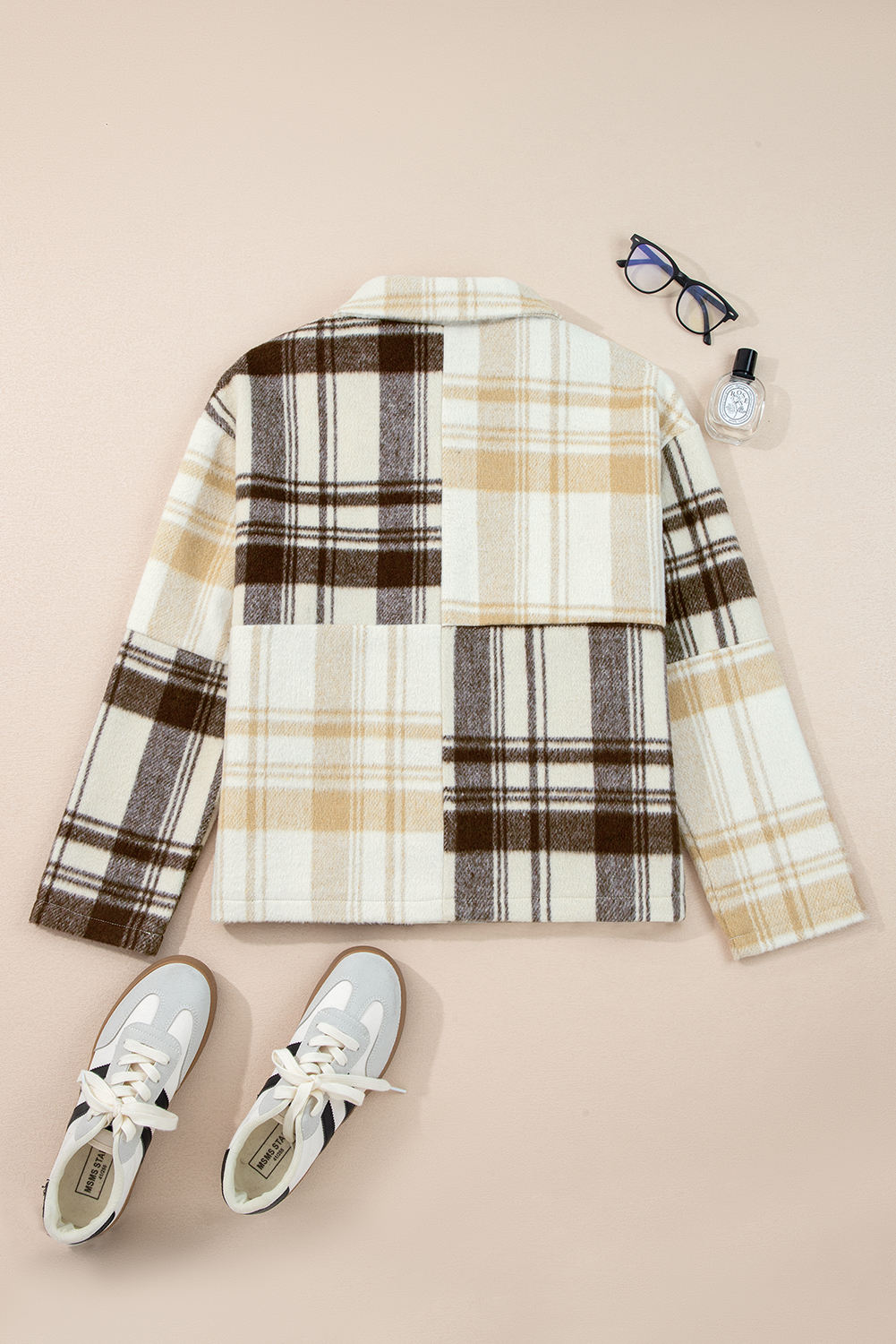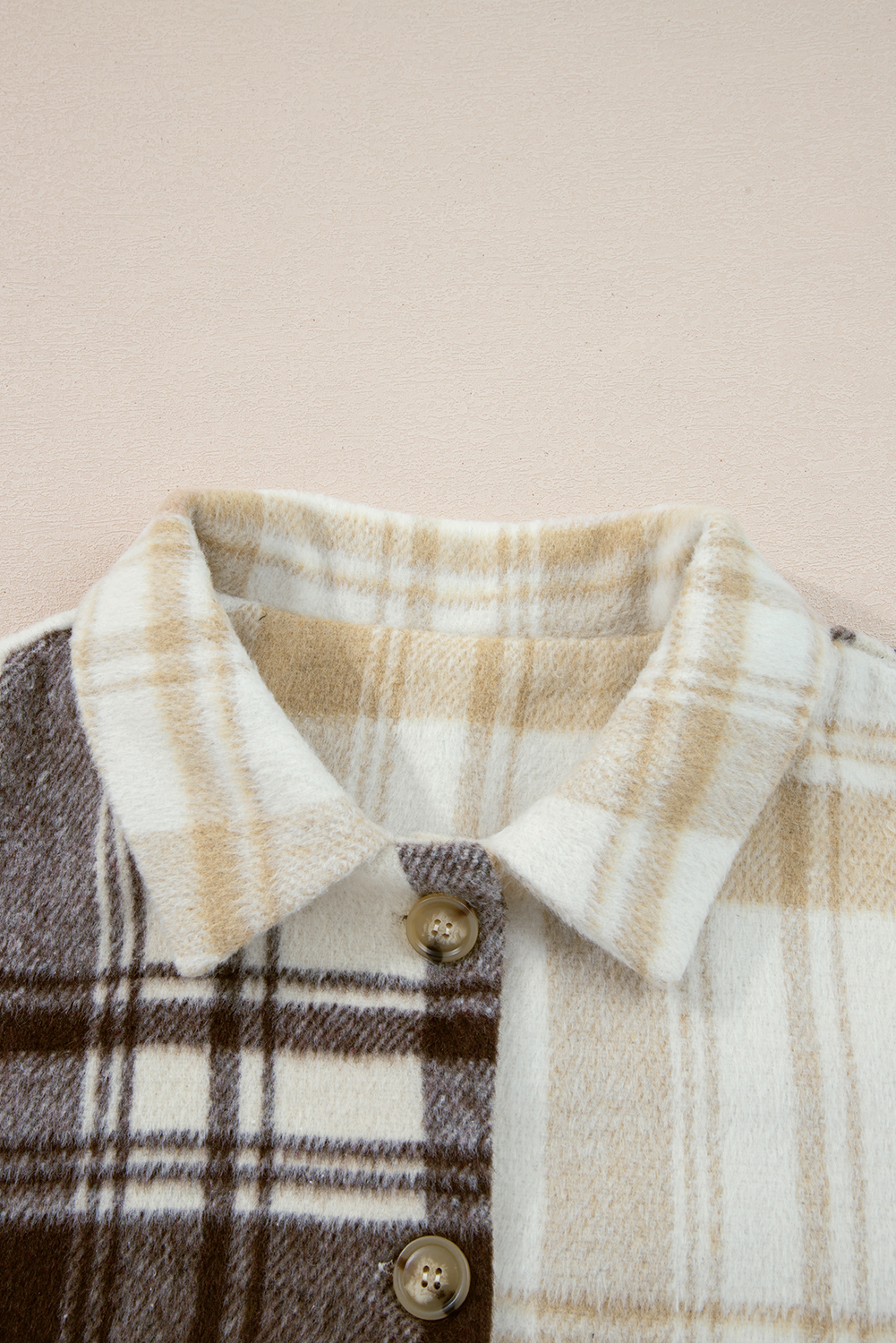 Multicolour Plaid Patchwork Side Pockets Buttoned Shacket