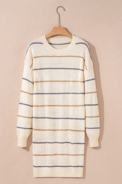 Multicolour Striped Print Drop Shoulder Shift Sweater Mini Dress