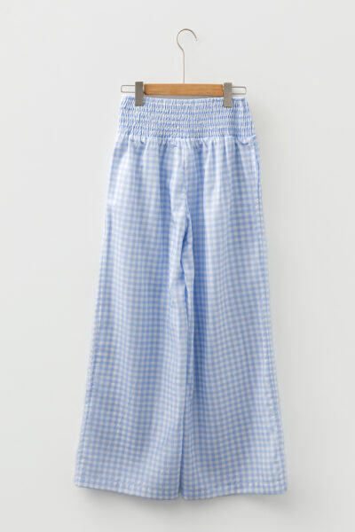 Myosotis Plaid Print Smocked High Waist Womens Loose Pants