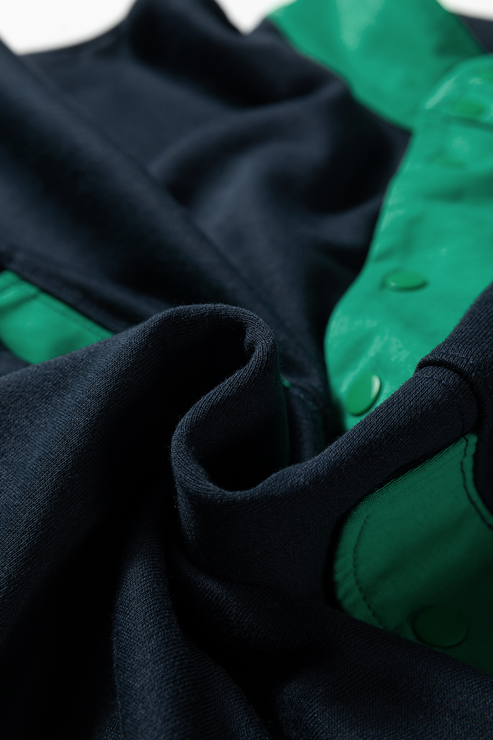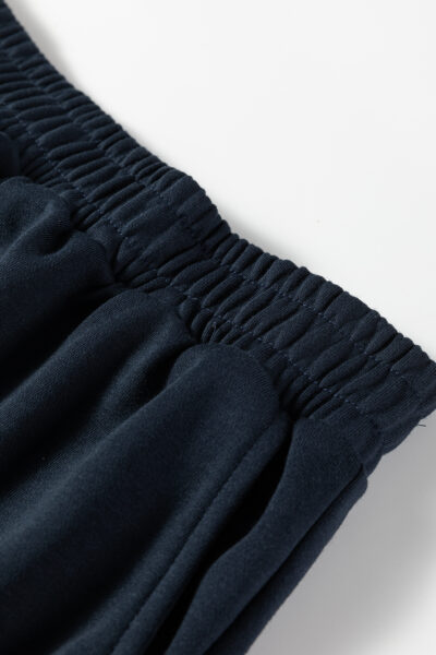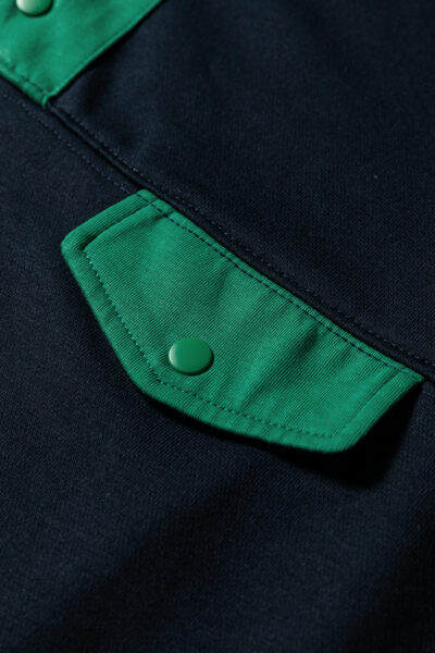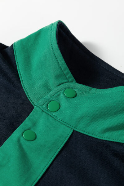Navy Blue Color Block Patchwork Half Button Pullover and Shorts 2pcs Outfit