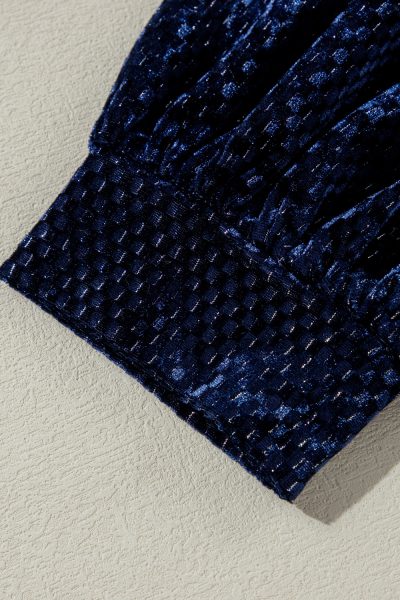 Navy Blue Plus Size Textured Velvet Tiered Button V Neck Dress