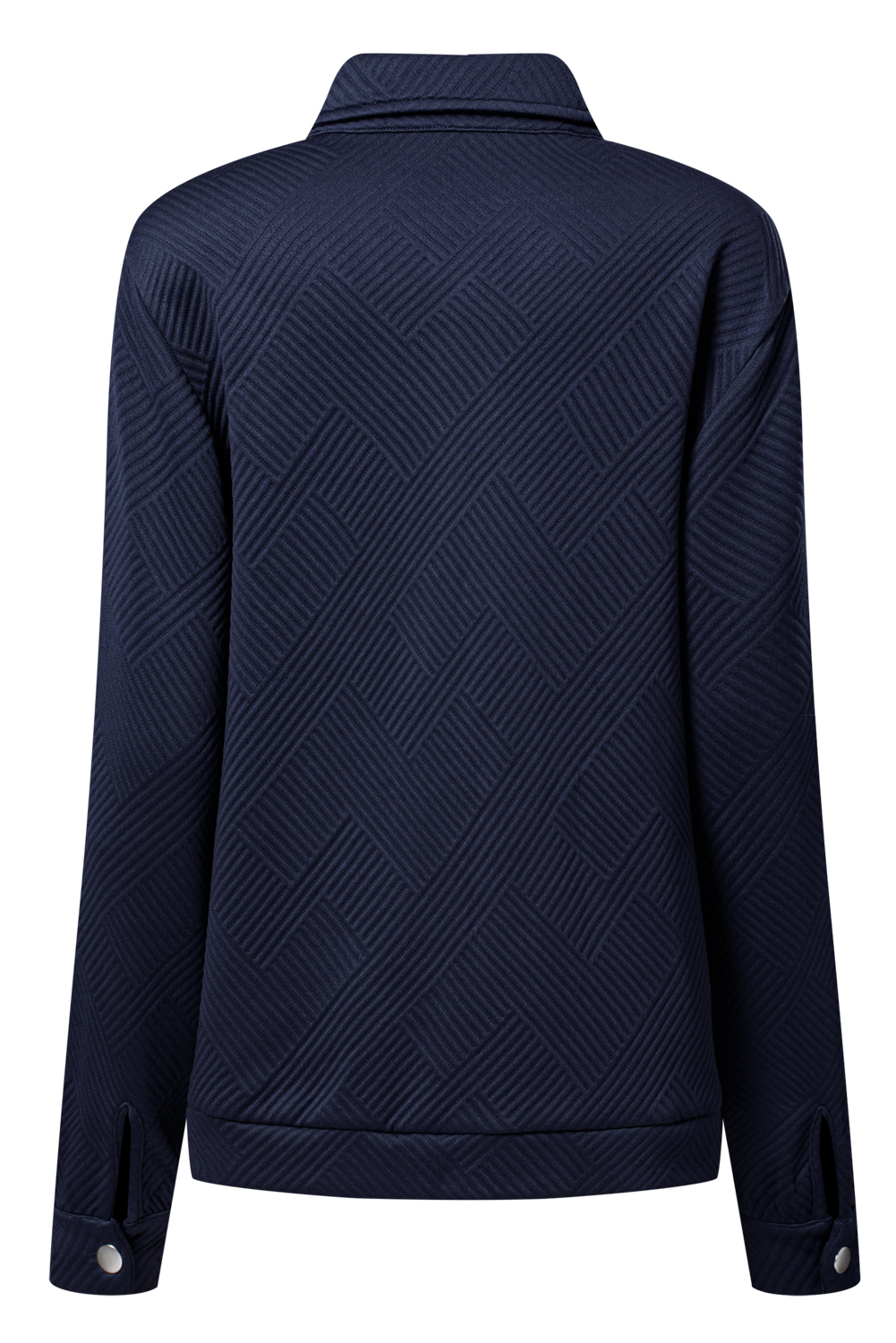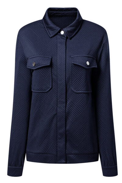 Navy Blue Solid Color Zip Up Button Flap Pocket Shirt Collar Jackets